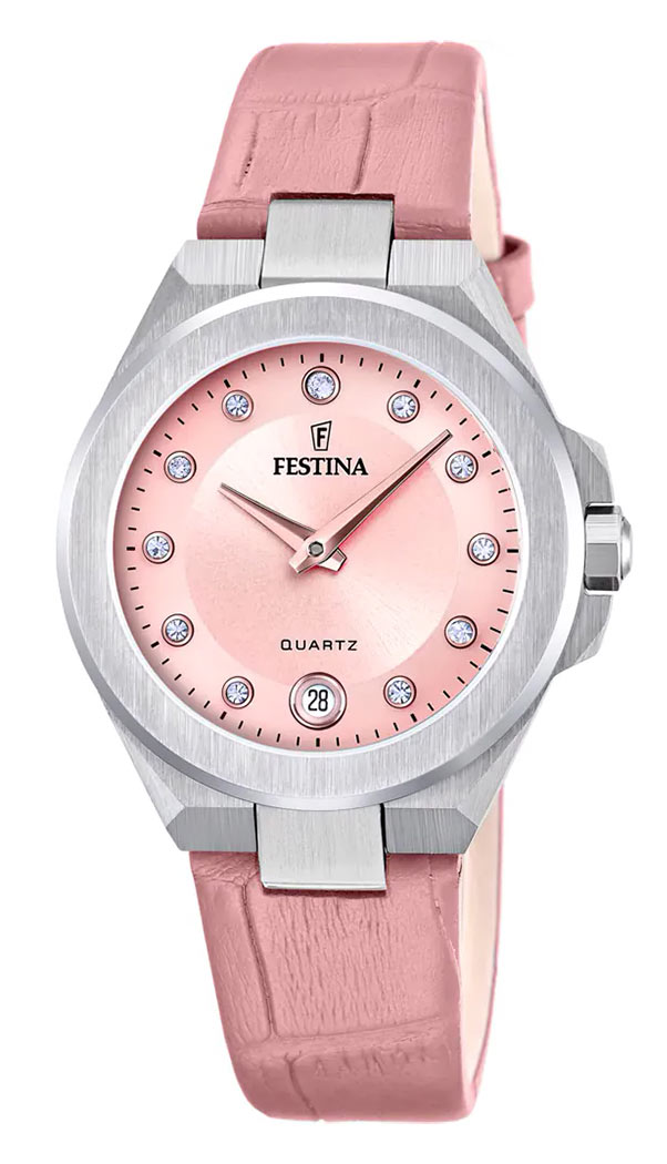 Ciferník se pyšní krásným zdobením v podobě lesklých zirkonových kamínků. Jedenáct pečlivě uspořádaných krystalů v celých hodinových bodech, spárovaných s ostrými ručičkami, ukazuje aktuální čas. Okénko s kulatým datem v 6 hodin ukazuje aktuální den v měsíci. Ciferník je minimalistický, ale elegantní. Majitel tohoto modelu bude schopen odečíst aktuální čas již po jediném pohledu. Dámské hodinky Festina na koženém řemínku budou kompletním doplňkem šatníku každé ženy.