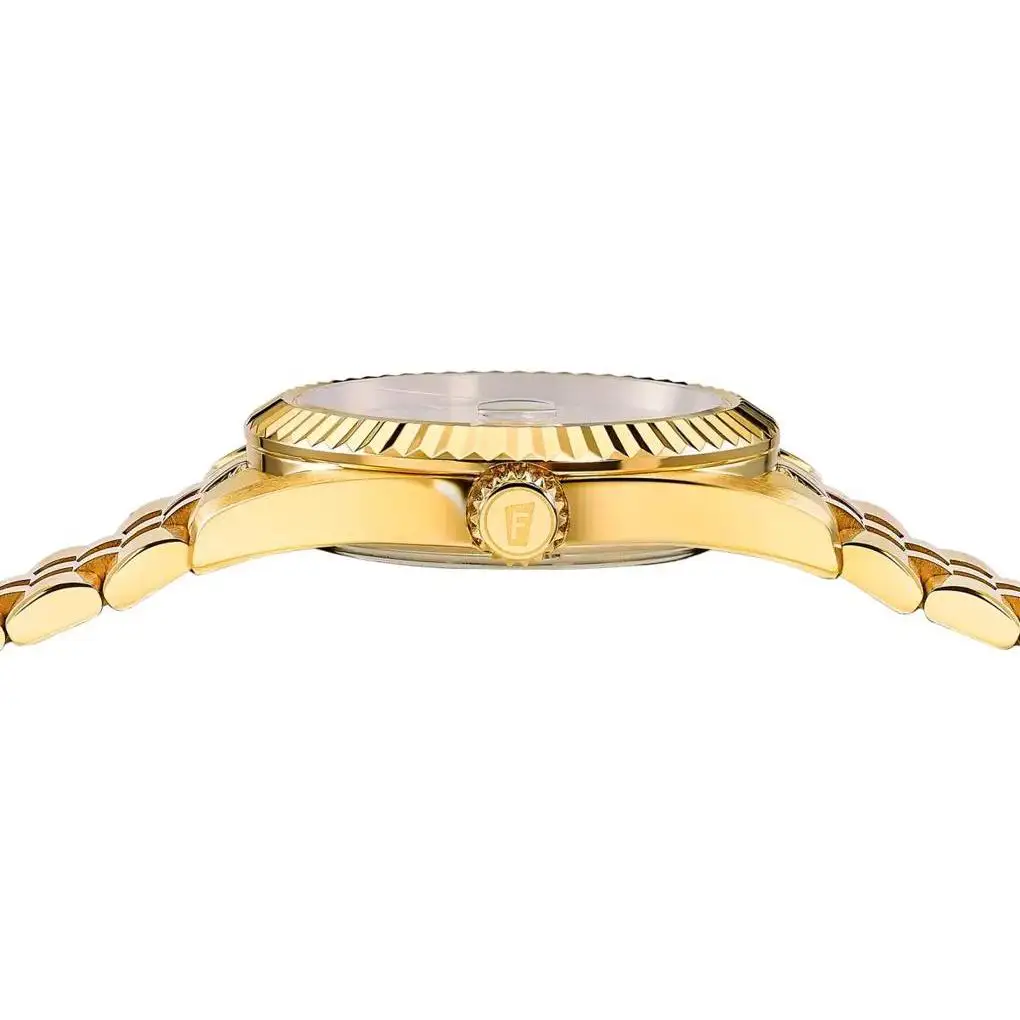 Festina Swiss Made Automatic F20092/1 jsou pánské pozlacené automatické hodinky navržené s ohledem na každodenní funkčnost a nadčasovou stylistiku. Pouzdro o průměru 41 mm vyrobené z nerezové oceli dobře sedí na zápěstí a charakteristická vroubkovaná luneta dodává celku výrazný charakter inspirovaný klasickými sportovně-elegantními hodinkami. Světlý, dobře čitelný ciferník s výraznými indexy a datovníkem zajišťuje rychlé odečtení času v každé situaci, zatímco ocelový náramek podtrhuje pevný a univerzální styl tohoto modelu.