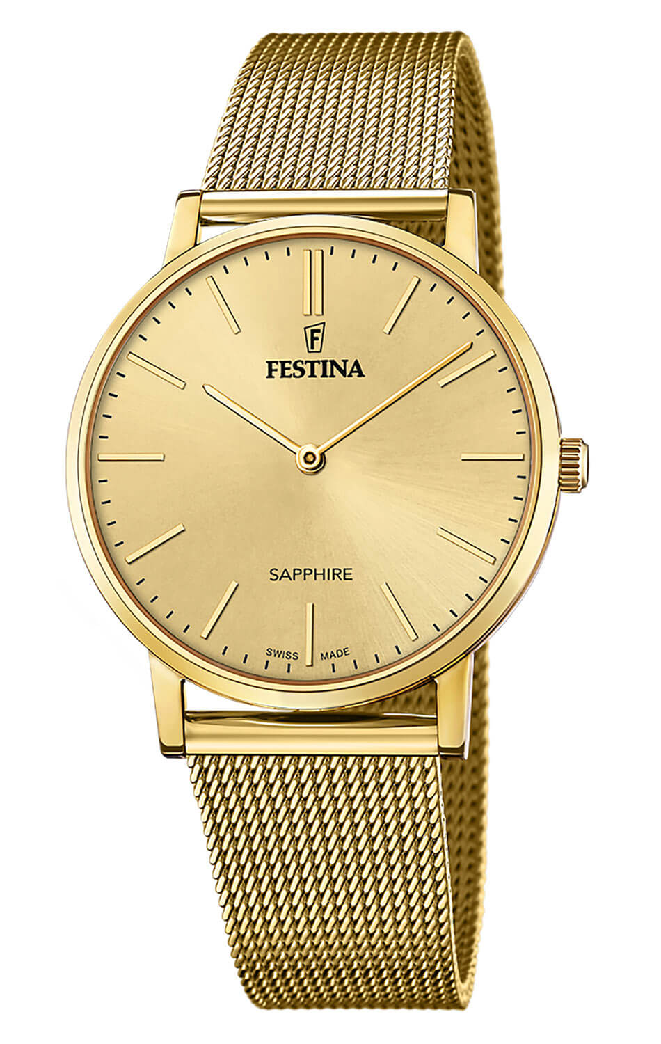 Ciferník ve zlatém tónu vyzařuje minimalistický charakter, zdůrazněný štíhlými liniovými indexy, jež zajišťují výbornou čitelnost. Jemně pozlacené ručičky se pohybují s výjimečnou přesností díky švýcarskému strojku Ronda, který je zárukou spolehlivého chodu. Festina Swiss Made F20022-2 nejsou jen výjimečné hodinky, ale také projev vytříbeného vkusu – doplněk, který nenápadně, avšak výrazně podtrhne styl a osobnost svého majitele.