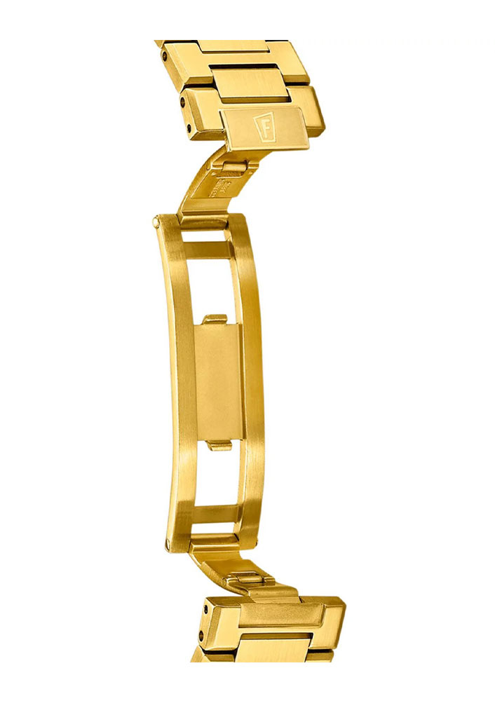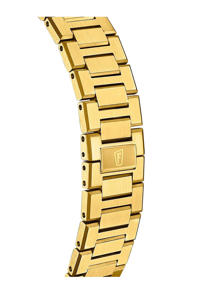 Pánské hodinky Festina Swiss Made F200322 mají kulaté pouzdro z nerezové oceli ve zlatém PVD. Luneta je zdobena charakteristickými liniemi. Na pravé straně je tradičně umístěna korunka na tři hodiny. 40mm hodinky jsou integrovány ocelovým náramkem zlaté barvy. Náramkové hodinky Festina jsou zajištěny pevnou motýlkovou sponou se dvěma knoflíky. Celá konstrukce je odolná vůči vodě až do hloubky 100 metrů. 10 atmosfér vám umožňuje plavat s časovačem bez obav z jeho poškození.