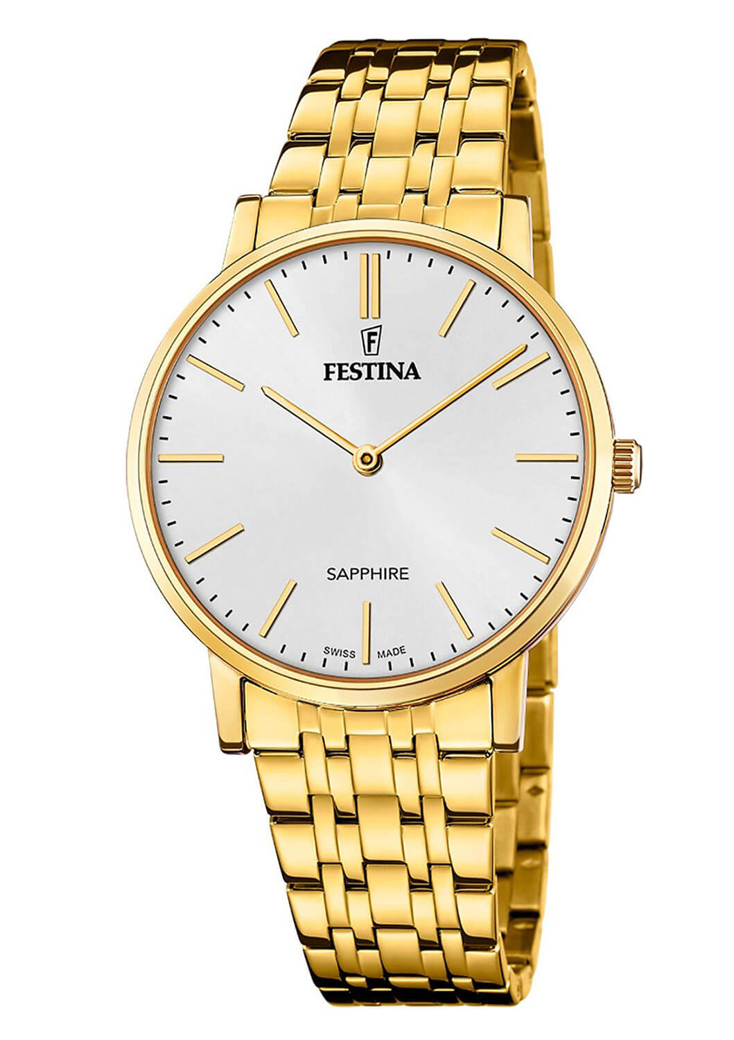 Pozlacené pánské hodinky Festina Swiss Made F20046/2 jsou ideální volbou pro muže, kteří si cení elegance a funkčnosti v minimalistickém provedení. Jemný design tohoto časoměru dokonale ladí jak s formálním oblečením, tak i s každodenním stylem. Jejich univerzálnost a klasická forma činí z tohoto modelu skvělou volbu pro muže, kteří hledají nadčasový doplněk zdůrazňující jejich styl a charakter. Absence zbytečných ozdob, čistý design a přehledný ciferník dělají z těchto hodinek mimořádně atraktivní volbu pro ty, kteří upřednostňují decentní eleganci.