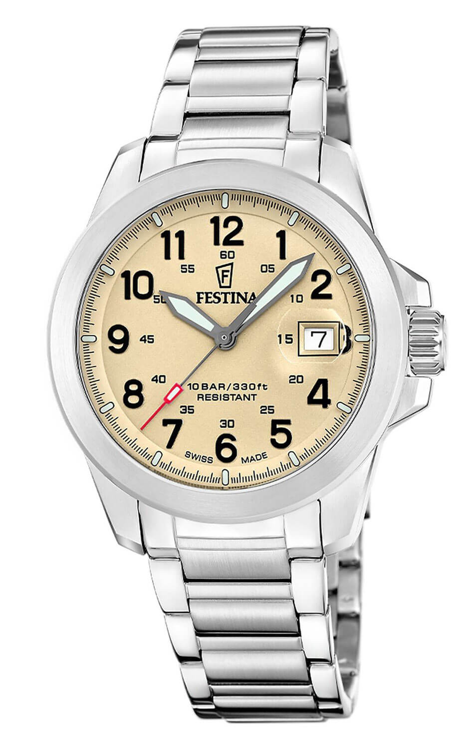 Pánské hodinky Festina Swiss Made Field F20081/1 jsou modelem, který se bez obtíží pohybuje jak ve světě klasické elegance, tak i v dynamičtějších, každodenních podmínkách. Béžový ciferník s výraznými arabskými indexy zajišťuje vynikající čitelnost a ocelové pouzdro spolu s náramkem dodávají celku solidnost a sportovní charakter. Jedná se o časoměřič pro muže, který nechce volit mezi šarmem a funkčností – tento model se dokáže přizpůsobit oběma situacím, od pracovních schůzek až po aktivity na čerstvém vzduchu.