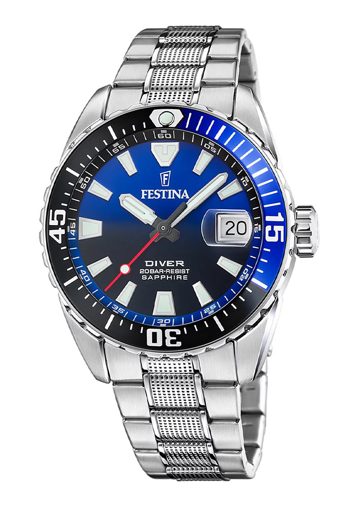 Profesionální diverské hodinky Festina The Originals Diver F20669/5 ukazují, že Festina se stále noří do světa sportu. Značka byla vždy spojena s hodinkami aktivity a sportu, tentokrát nabízí produkt pro fanoušky diverských hodinek. Jedná se o doplněk, který se může pochlubit nejlepšími nabízenými funkcemi za nepřiměřenou cenu.