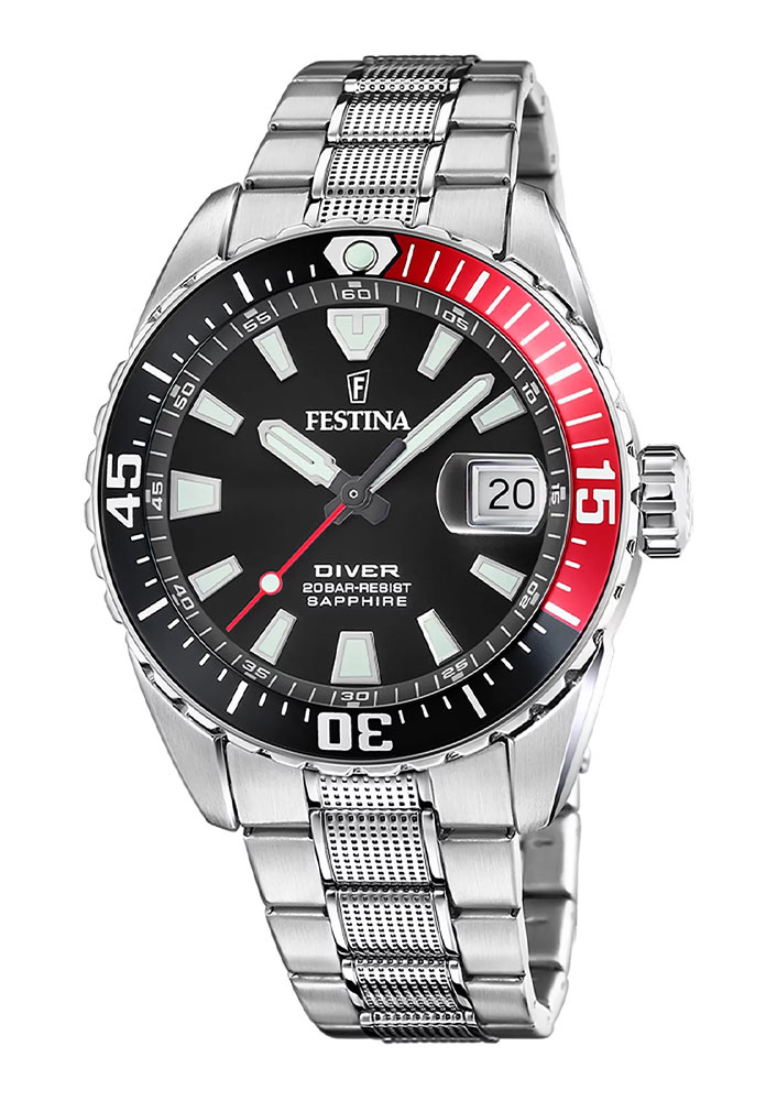 Profesionální diverské hodinky Festina The Originals Diver F20669/6 ukazují, že Festina se stále noří do světa sportu. Značka byla vždy spojena s hodinkami aktivity a sportu, tentokrát nabízí produkt pro fanoušky diverských hodinek. Jedná se o doplněk, který se může pochlubit nejlepšími nabízenými funkcemi za nepřiměřenou cenu.