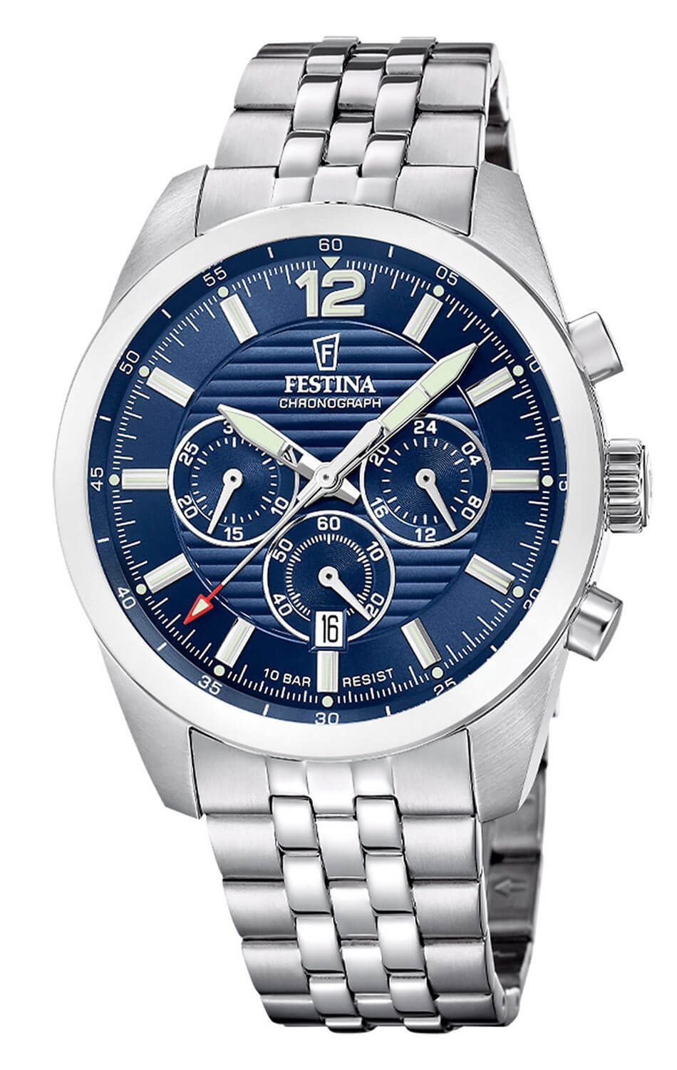 Festina Chronograph F20742-1 je vyrobena z ušlechtilé oceli, což zajišťuje odolnost a elegantní zpracování. Tmavě modrý ciferník s vertikálním gilošováním dodává hloubku a kontrast, zatímco stříbrné indexy a ručičky potažené luminiscenční vrstvou garantují čitelnost za všech podmínek. Minerální sklíčko chrání povrch ciferníku a náramek z ušlechtilé oceli dotváří celek a podtrhuje robustní charakter hodinek. Festina Timeless je volbou pro muže, kteří chtějí mít na zápěstí sportovní, spolehlivý a funkční časoměřič.
