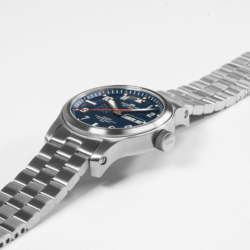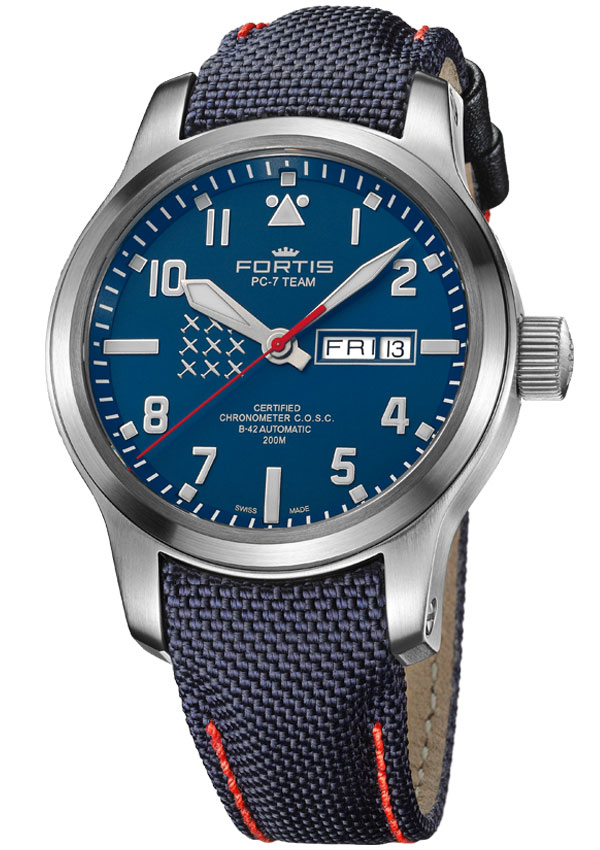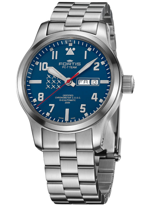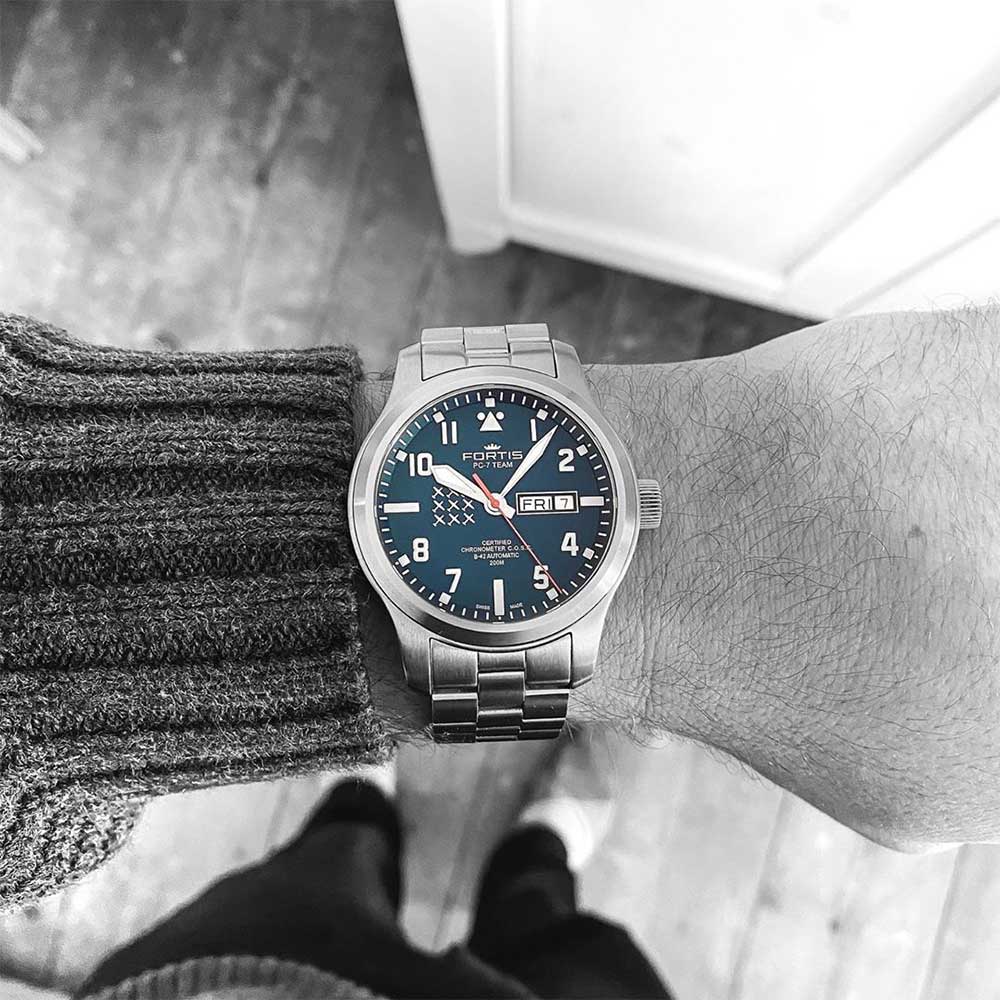 Společnost Fortis , založená v roce 1912, je známá svými odolnými a funkčními hodinkami a dlouholetým spojením značky s letectvím a vesmírným průzkumem. Značka začala vyrábět hodinky pro tým PC-7 TEAM před více než 12 lety. PC-7 je demonstrační tým švýcarského letectva. Jsou přijímáni pouze nejlepší piloti. Se svými letouny Pilatus PC-7 propagují a reprezentují švýcarské hodnoty na národních a mezinárodních leteckých přehlídkách: dynamiku, eleganci a přesnost.