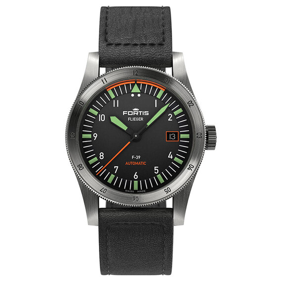 Fortis Flieger F-39 Automatic F4220006 se vyznačuje výraznými kontrasty. Je stejně tak každodenním doplňkem i náMachineovými hodinkami. Jeho barva není barva, ale funkce. Oranžová není nikdy stylová, je vždy funkční. Ocel - zelená - oranžová jsou dodnes vlastnostmi jediného, skutečného "FLIEGER" - průkopníka světové definice pilotních hodinek a dodnes je referenčním bodem pro většinu napodobitelů. Na oranžových prvcích (Berlac Fluor Orange) byla použita technologie Brixtrack® zajišťující „roztíratelnost ve zlomku sekundy“ a na zelené – velmi jasný Superluminova® X1. Bez ohledu na to, kde skončíte pozdě v noci, nikdy neztratíte pojem o čase!