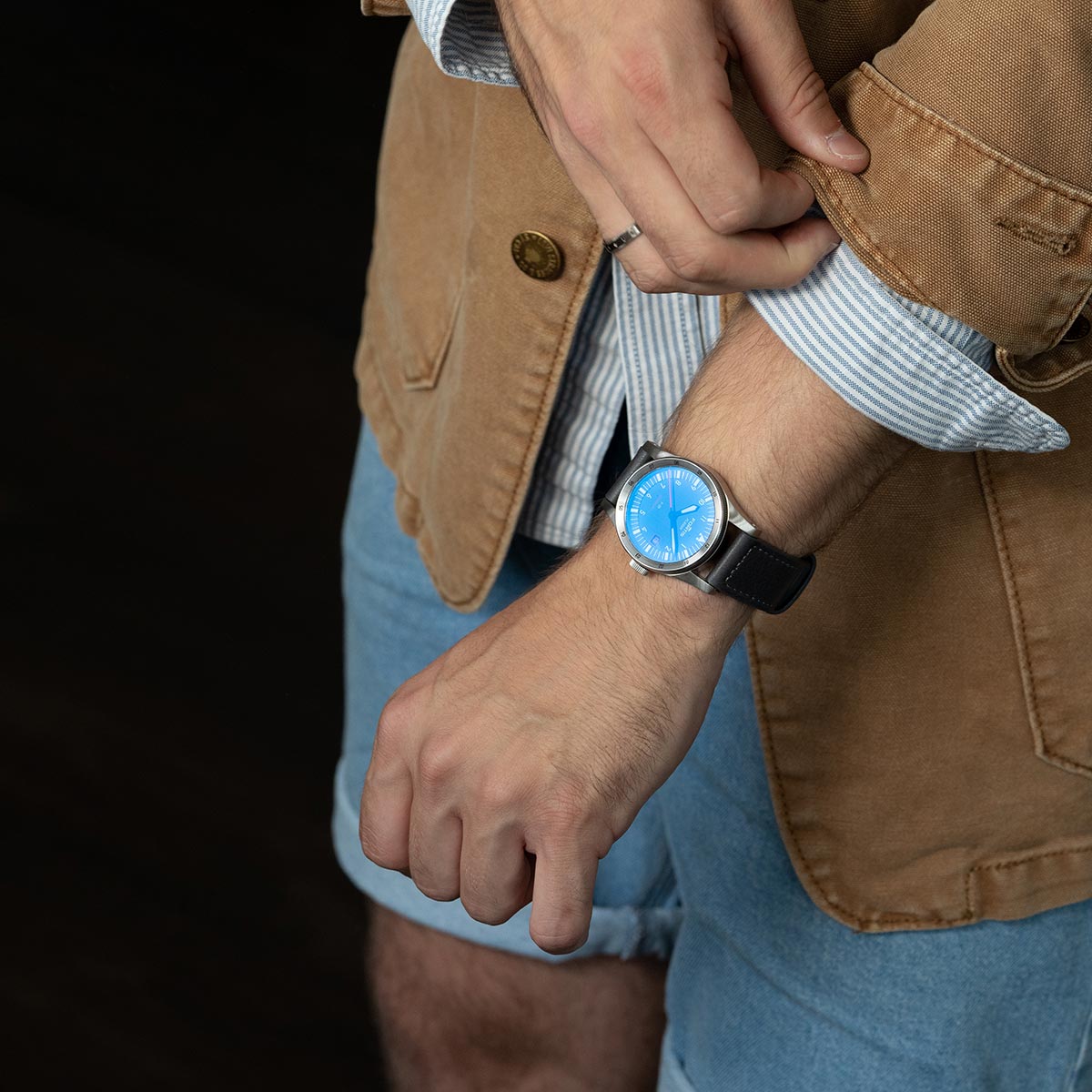 Pánské hodinky Fortis Flieger F-39 Midnight Blue F4220011 „předefinují – první náMachineové hodinky Fortis vyrobené z recyklované oceli“ . S Flieger Midnight Blue razí tvůrci cestu všem jejich nástupcům: od okamžiku premiéry mají být všechna pouzdra vyrobena z recyklované oceli. Tým značky Fortis věří, že náMachineové hodinky jsou více než jen funkčnost nebo ukazování času. Myšlenkou tvůrců je neustálé hledání přísady, která nově definuje současný význam hodinek. Může to být nová funkce, emoce nebo materiál, jako v případě nového milníku F-39 Midnight Blue. V neposlední řadě je z udržitelných zdrojů také kožený řemínek, na kterém visí pevné 39mm pouzdro s broušenou povrchovou úpravou z recyklované oceli. "Opálený v olivových listech a ručně vyrobený v Německu." Jeho barva „Indigo“ dokonale ladí s novým odstínem broušeného ciferníku s názvem Midnight Blue, stejně jako akcenty s intenzivní oranžovou barvou.