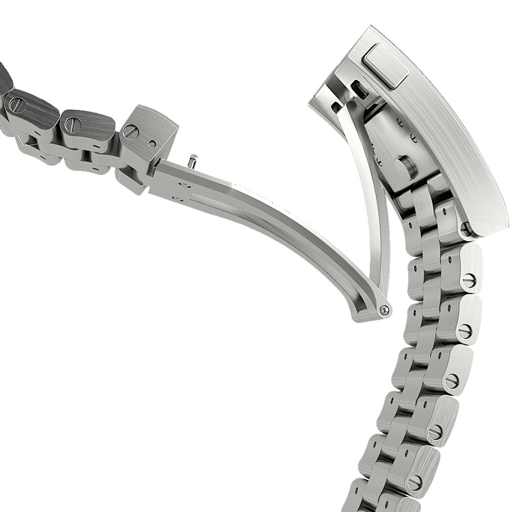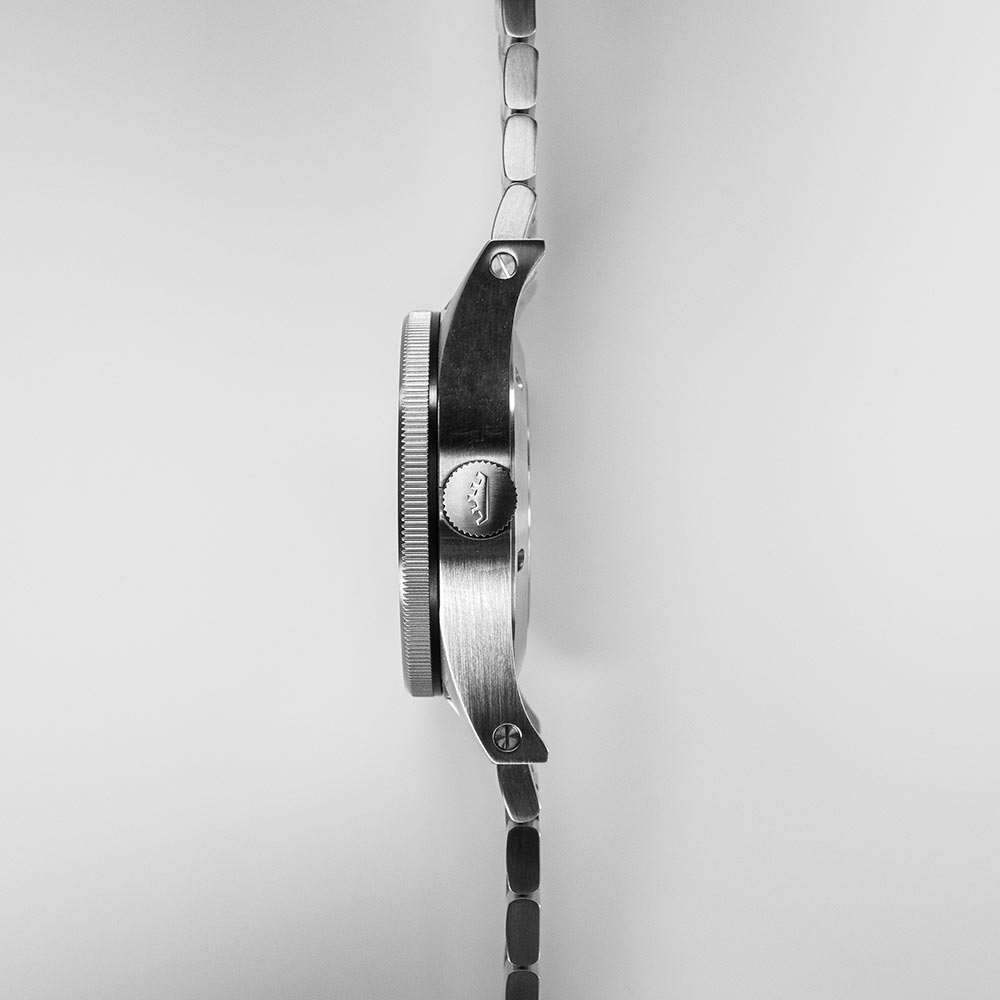 Jeho trvanlivé a odolné pouzdro je vyrobeno ze stejně vynikající nerezové oceli, pouze v aktuální velikosti a zavěšeno na náramku se zámkem se speciální posuvnou sponou. Tato spona má přesný posuvný systém, který vám umožní získat personalizovanou polohu náramku. Ciferník krytý průhledným safírovým sklíčkem s antireflexem nepoškrábajícím se opět zaujme svou velikostí. Má jasné číslice a indexy, ručičky připomínající meč, ikonickou neonově oranžovou vteřinovou ručku a trojúhelník na 12. hodině doprovázejí 2 tečky, které zlepšují čitelnost. Jedná se o hodinky pro cestovatele, které milují piloti z celého světa, profesionálové i amatéři.