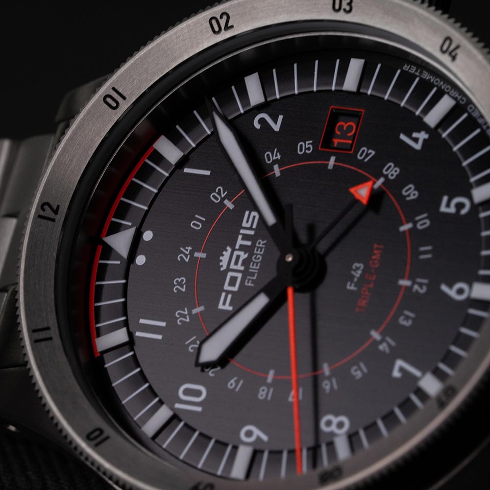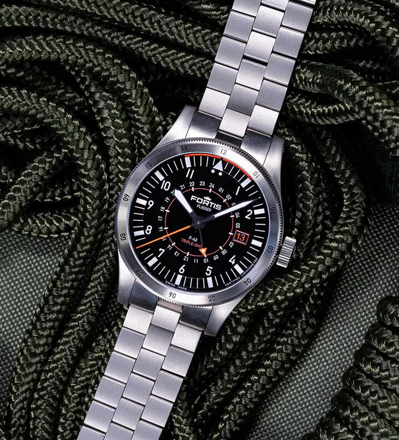 "Bez Fliegera by byla obloha jen vzduch." Hodinky Fortis Flieger F-43 Triple-GMT F4260000 patří do kolekce, jejíž hodinky ocenili nejvýraznější vojenští a akrobatičtí piloti, letky a kterou si oblíbili profesionálové i amatéři. Hodinky Flieger jsou oficiální časomírou mnoha špičkových letců. Aby pro ně zůstal spolehlivý, robustní a funkční, Fortis navrhl Synchroline®, který je zvláště užitečný, když se piloti spojí do formace. Pak je velmi důležité, aby byli všichni přesně srovnaní. Během ± 5 sekund se pilot dokáže sladit se zbytkem svých spoluhráčů.