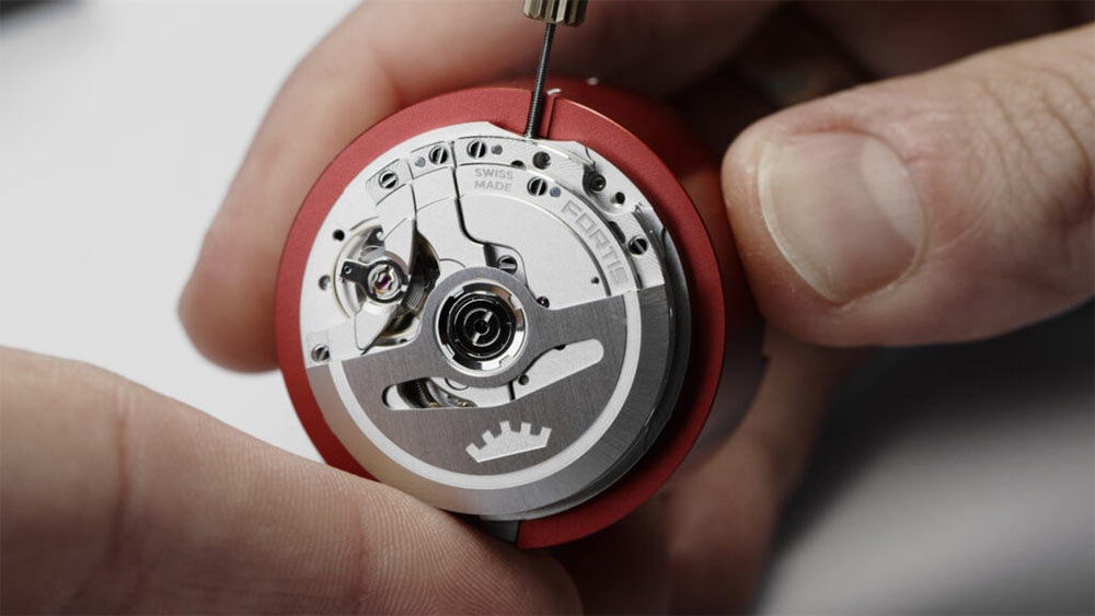Ruční strojek je rovněž plně mechanický, ale vyžaduje pravidelné natahování pomocí korunky.