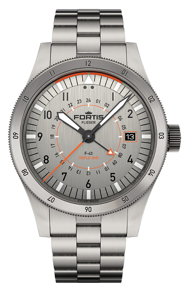 Švýcarská hodinářská značka Fortis představuje pánské hodinky v pravém leteckém stylu vyrobené ve spolupráci s profesionálními piloty. Fortis Flieger F-43 Triple-GMT Titanium F4260002 jsou hodinky navržené tak, aby každý majitel mohl zažít pocity skutečného pilota.
