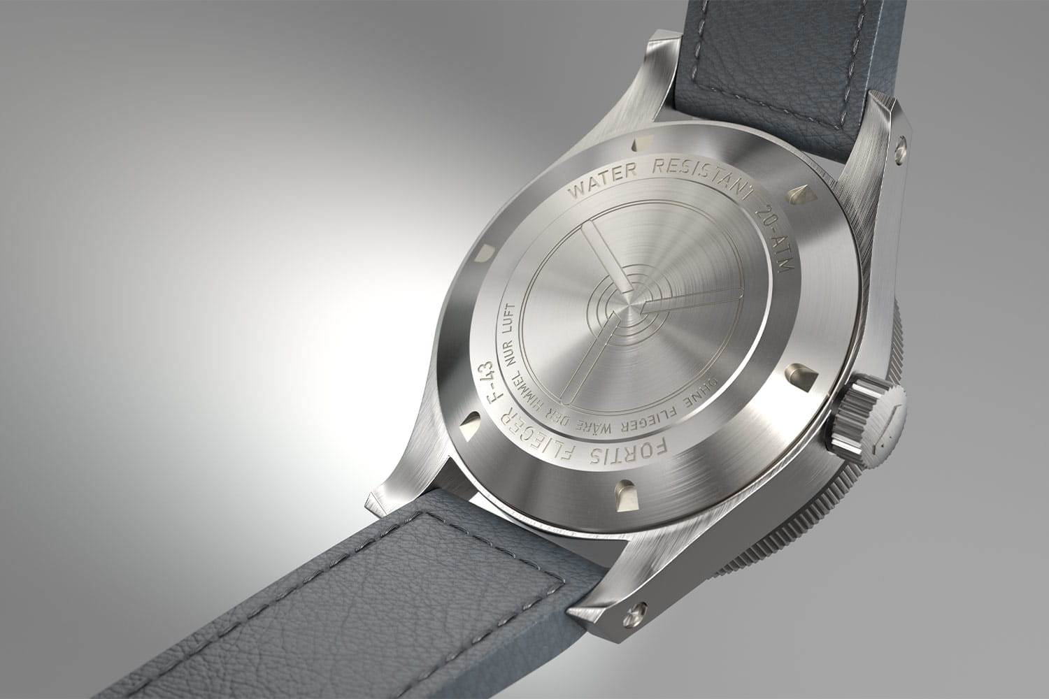 Pánské hodinky Fortis F4260003 jsou 43mm pouzdro z šedého titanu - velkými přednostmi titanu je nízká hmotnost a odolnost. Hodinky byly utěsněny na 200 metrů, což vám umožňuje potápět se bez obav z poškození mechanismu. Těsnost těchto hodinek zajišťuje šroubovací korunka se třemi těsněními a šroubovací zadní část pouzdra. Na přední straně krytu je jednosměrná luneta s druhou 12hodinovou časovou zónou GMT s 24 kliknutími, která umožňuje rychlou změnu zóny pouhým jedním otočením. Na očka pouzdra je připevněn elegantní šedý kožený řemínek. Popruh je lehký, měkký a málo váží, což zajistí pohodlí při nošení.