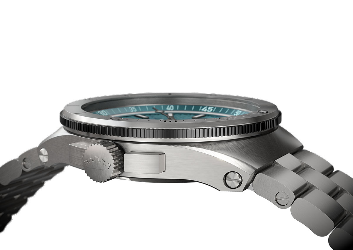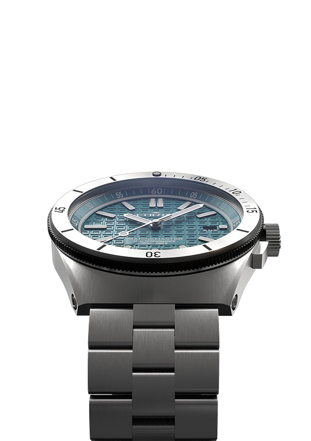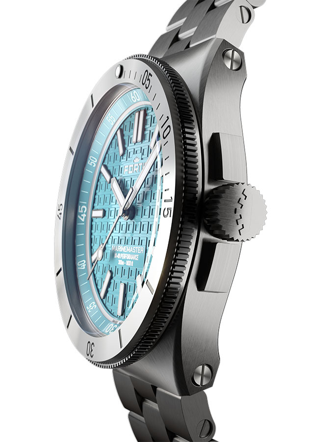 Puškohled má navíc boční vroubkování, které usnadňuje uchopení. Číselník je uklidňující modrý jako ostrá horská voda a je pokryt průhledným safírovým sklem téměř bez škrábanců s dvojitou antireflexní vrstvou. Fortis Marinemaster M-40 Serenity Blue obsahuje modernizovaný kalibr UW-30, což je vysoce výkonný automatický kalibr UW-30 Performance s rezervou chodu 38 hodin. To, co jej odlišuje od staršího modelu, je pevné, antimagnetické, pozlacené balanční kolečko Glucydur, které poskytuje výjimečnou přesnost standardu chronometru. UW-30 Performance, umístěný v pouzdře z recyklované oceli, podtrhuje silnou pozici Fortis v náMachineových hodinkách. Hodinky jsou zavěšeny na ocelovém náramku BLOCK BRACELET s možností samočinného nastavení.