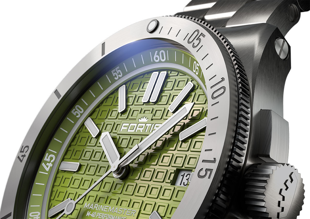 Okamžitě znatelné a identifikující celý model, hranaté označení „O“ je převzato z loga FORTIS, které je díky nejjasnější luminiscenční látce SUPER-LUMINOVA X1 na číselníku stejně viditelné ve dne jako v noci. Jsou jím zakryty i broušené indexy, ručičky a bod přítomný na GEAR BEZEL, tedy jednosměrná luneta se šroubovací korunkou, systémem trojitého těsnění a protinárazovou ochranou. Hodinky jsou vodotěsné do 300 metrů, takže budou vhodné jak pro profesionální divere, tak pro lidi, kteří si užívají výhod aktivit na souši.