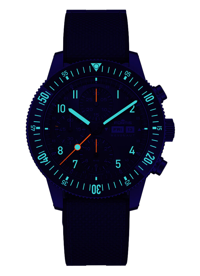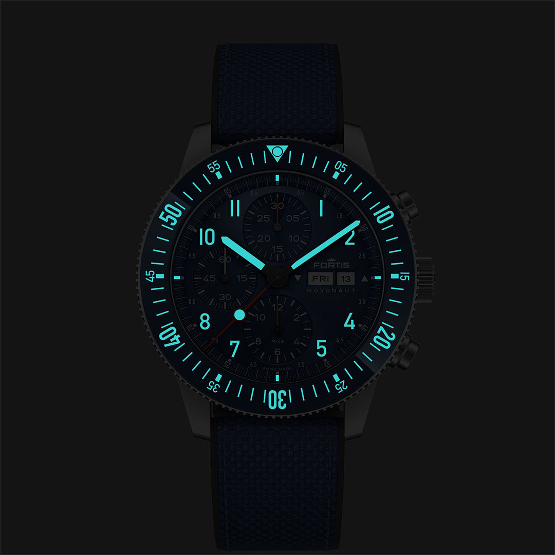 Keramická luneta je nejen atraktivní, ale také odolná a v kombinaci se svítícím materiálem dělá z těchto hodinek dokonalého společníka pro každou výzvu, ve dne i v noci. Každý model Fortis Novonaut využívá vlastní automatický mechanismus se sloupovým kolem – WERK 17, jehož odolnost byla testována ve stratosféře. Pánské hodinky s chronografem a datumovkou jsou poháněny technologií, která je odolná vůči mikrogravitaci, extrémním teplotám, záření, mikrohustotě a nárazovému větru až do rychlosti 250 km/h. Rezerva chodu ráže Fortis WERK 17 je přibližně 60 hodin.