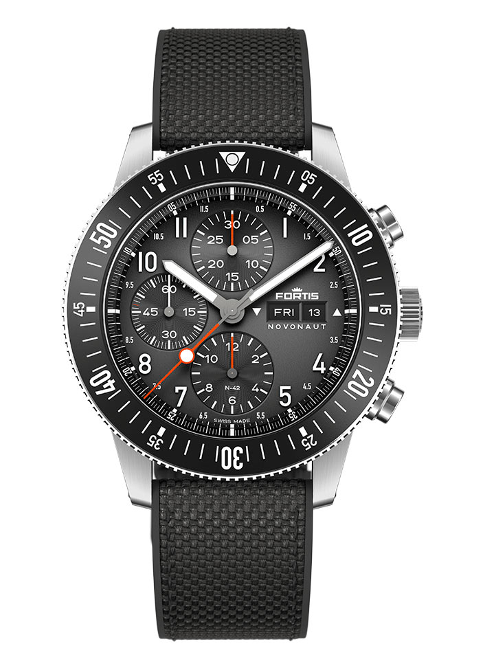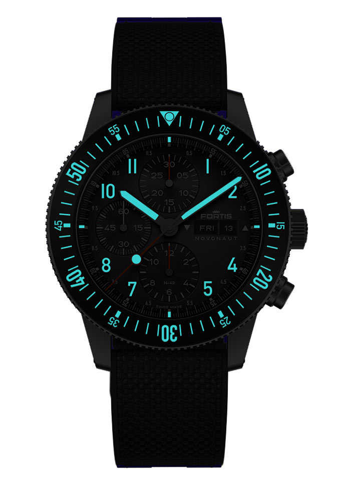 Keramická luneta je nejen atraktivní, ale také odolná a v kombinaci se svítícím materiálem dělá z těchto hodinek dokonalého společníka pro každou výzvu, ve dne i v noci. Každý model Fortis Novonaut využívá vlastní automatický mechanismus se sloupovým kolem – WERK 17, jehož odolnost byla testována ve stratosféře. Pánské hodinky s chronografem a datumovkou jsou poháněny technologií, která je odolná vůči mikrogravitaci, extrémním teplotám, záření, mikrohustotě a nárazovému větru až do rychlosti 250 km/h. Rezerva chodu ráže Fortis WERK 17 je přibližně 60 hodin.