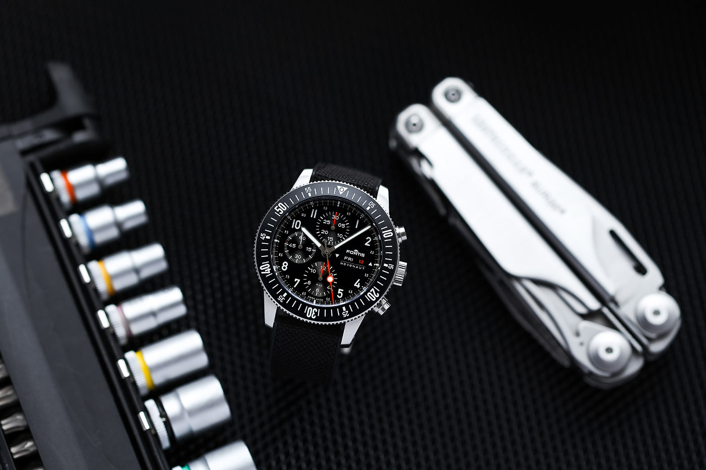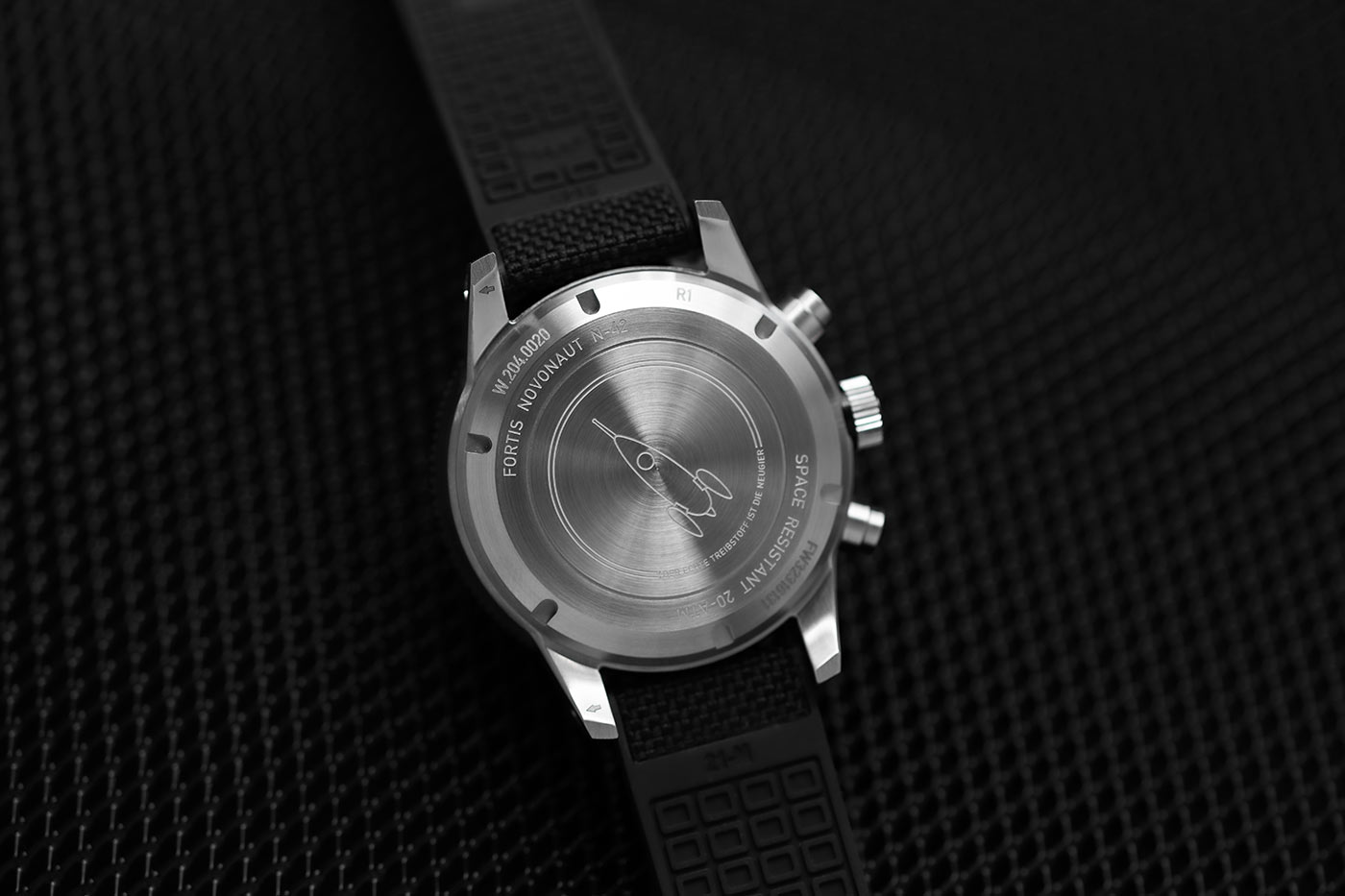 Nekompromisní odolnost vyrobených hodinek Fortis F2040009 dokazuje i materiál, ze kterého byly vyrobeny. Pouzdro 42 mm (44 mm s rámem) je vyrobeno z recyklované nerezové oceli. Funkčnost pouzdra zahrnuje mimo jiné speciálně navržené pryžové těsnění FKM u korunky a vroubkovaný okraj pro snadnější uchopení. Funkční hodnotou černého hybridního řemínku (kombinace kvalitní pryže a textilního materiálu) je jeho stabilní poloha na zápěstí, lepší odolnost a pohodlnější péče. Dalším prvkem, který výrazně určuje kvalitu automatického chronografu Fortis Novonaut, je safírové sklíčko odolné proti poškrábání s nejlepší antireflexní vrstvou na světě. Třída voděodolnosti deklarovaná výrobcem je do 20 barů (200 metrů), model Fortis Novonaut tak má další uplatnění při potápění.