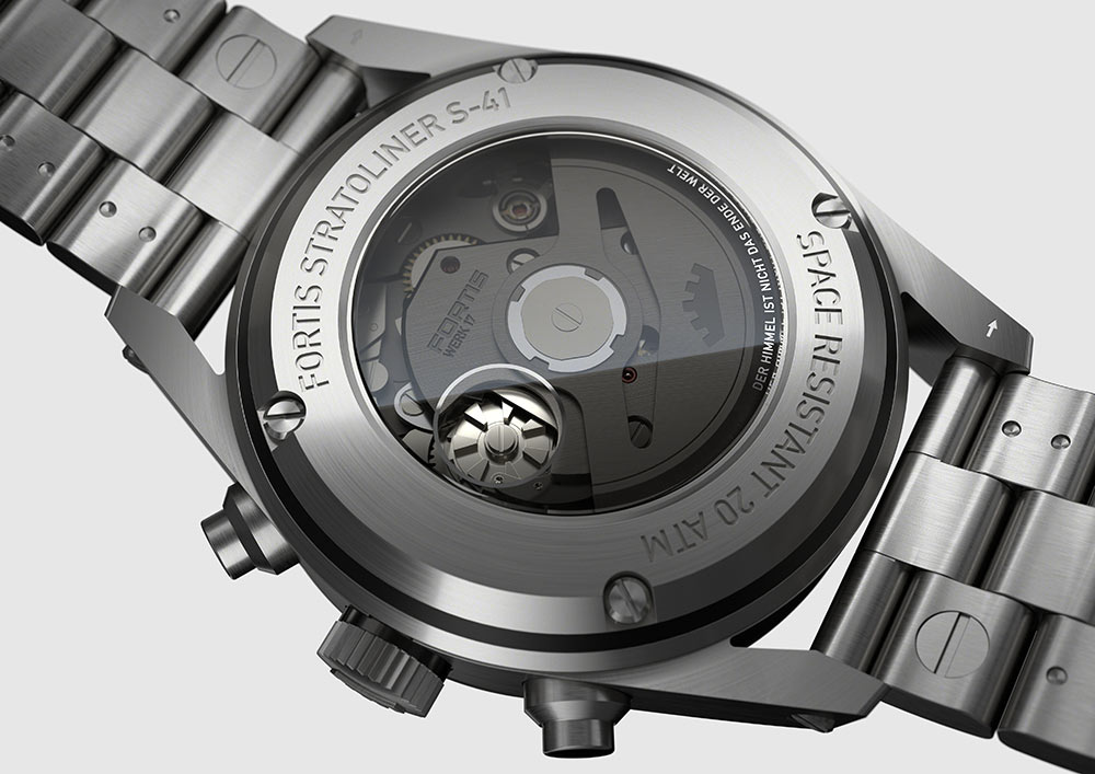 Nejnovější Stratoliner je navíc vybaven automatickým chronografickým Machinekem WERK 17, který je prvním vlastním kalibrem testovaným v otevřené stratosféře. WERK 17 cestoval do stratosféry a zpět na Zemi, aby prokázal svou bezkonkurenční robustnost. Jeho sloupové kolo je extrémně odolné a má rezervu chodu až 60 hodin. Jsou to jediné „vesmírné“ hodinky. Na okraji víka je certifikace výrobce: "Space Resistant 20 ATM". Konstrukci Machineku Fortis WERK 17 lze obdivovat přes exkluzivní zadní část pouzdra z kouřového safírového skla. Další jedinečný zážitek poskytuje kulaté okno, připomínající vesmírnou loď. Uživatel díky němu získává jedinečnou možnost nahlédnout do hodinářského mikrokosmu.