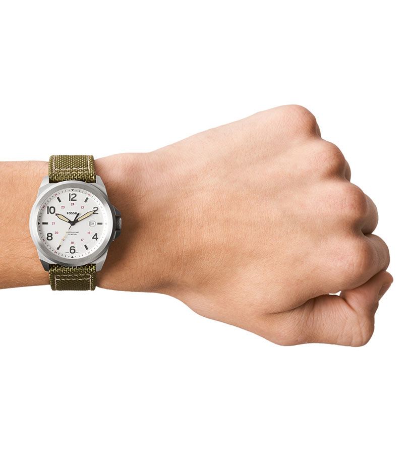 Hodinky Fossil Branson jsou klasické hodinky s jasným, dobře čitelným číselníkem. Pod minerálním sklíčkem, které účinně chrání ciferník před poškozením, najdeme arabské číslice smíchané s lineárními indexy a datumové okénko na 3. hodině s aktuálním dnem v měsíci. Číselník umožňuje odečítat aktuální čas také ve 24h režimu. Srdcem hodinek je bateriový Machineek Quartz. Třída vodotěsnosti 10 barů (až 100 metrů) umožňuje bezpečné plavání s hodinkami na zápěstí. Hodinky Fossil Branson jsou perfektní každodenní hodinkou. Jeho jednoduchá linie se bude hodit ke každému outfitu.