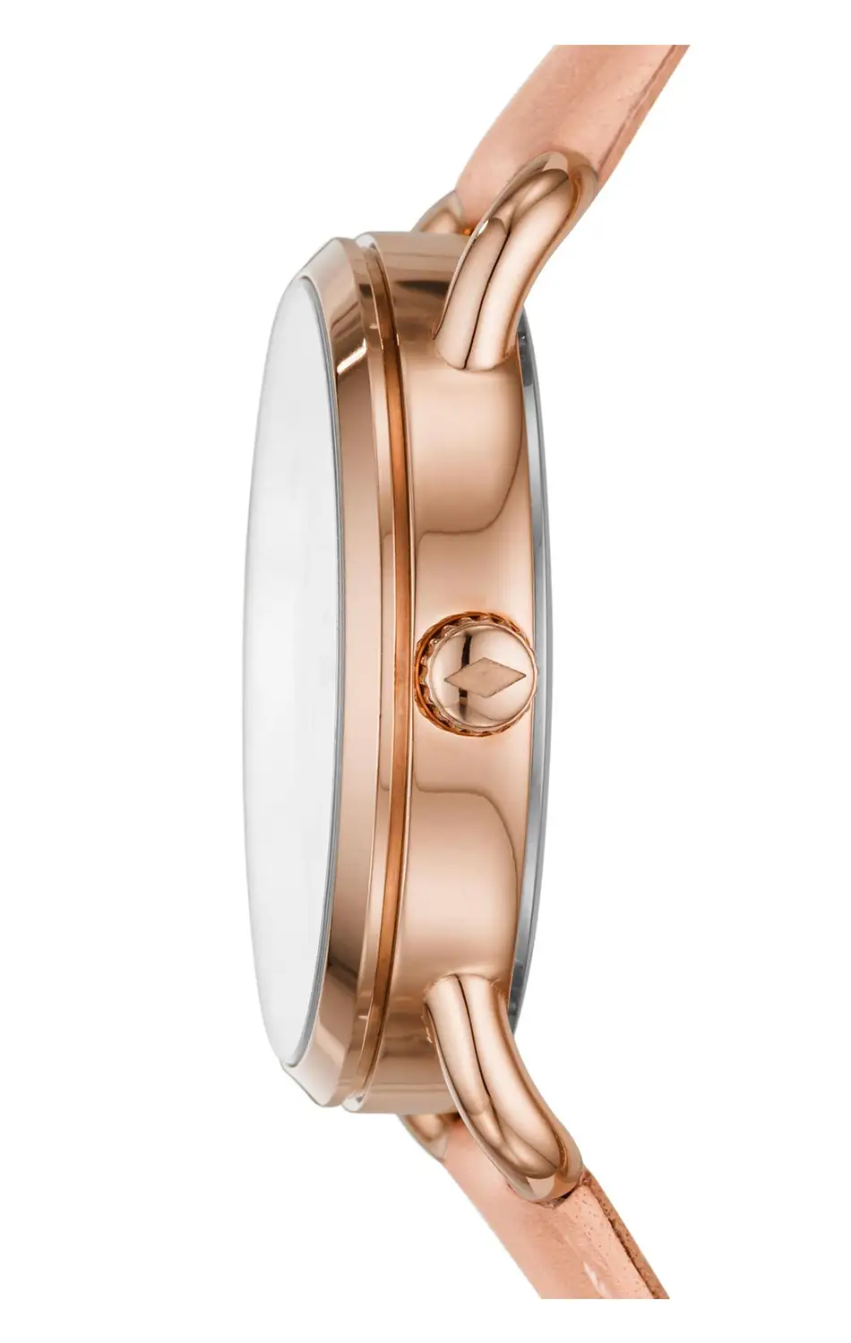 Sametový béžový řemínek z přírodní kůže je pověstnou tečkou nad „i“, která narušuje formální eleganci trochou moderní lehkosti a přizpůsobuje se tobě jako druhá kůže. Ať už držíš v ruce ranní kávu, nebo večerní sklenku šampaňského, Fossil ES4823 spojuje celý outfit do uceleného módního příběhu. Je to esence stylu effortless chic – hodinky, které tvůj look nejen doplňují, ale znovu ho definují a dodávají sebevědomí v té nejjemnější podobě.