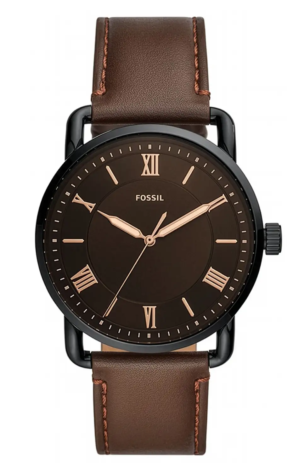 Pánské hodinky Fossil Copeland FS5666 jsou modelem, který sází na klasickou čitelnost a klidnou eleganci v moderním provedení. Černé pouzdro o průměru 44 mm jim dodává výraznou, mužnou siluetu, přičemž zůstává dostatečně štíhlé, aby hodinky dobře seděly na zápěstí. Hnědý kožený řemínek v kombinaci s tmavým číselníkem a kontrastními ručkami vytváří harmonický, střídmý celek, který se skvěle hodí jak ke každodenním outfitům, tak k promyšlenějšímu, ležérnímu stylu.