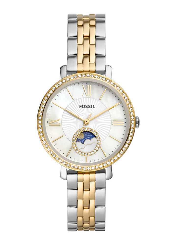 Dámské hodinky Fossil se vyznačují vytříbeným a moderním designem. Hodinky s kubickými zirkony Fossil jsou na přední straně chráněny tvrdým minerálním sklem. Chrání krásný a jedinečný perleťový ciferník zdobený zirkonovými kamínky kolem funkčního subciferníku. Lesklé krystaly doprovázejí pozlacené štíhlé ručičky a smíšené římské a lineární indexy. Módní hodinky Fossil jsou vybaveny přesným quartzovým strojkem s komplikací zobrazení den-noc. Krásné okno se soukromým kouskem oblohy bude ukazovat aktuální denní nebo noční dobu.