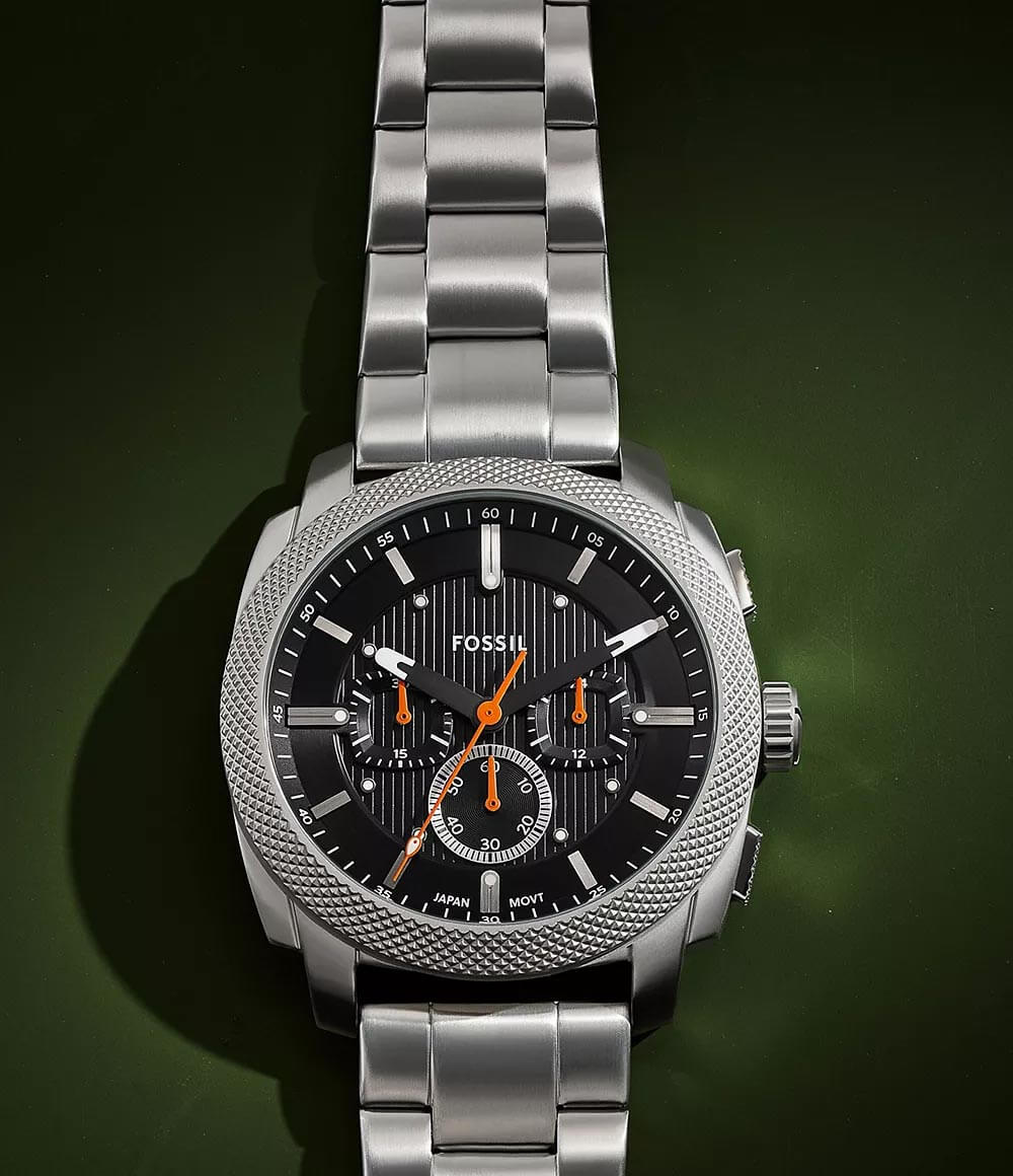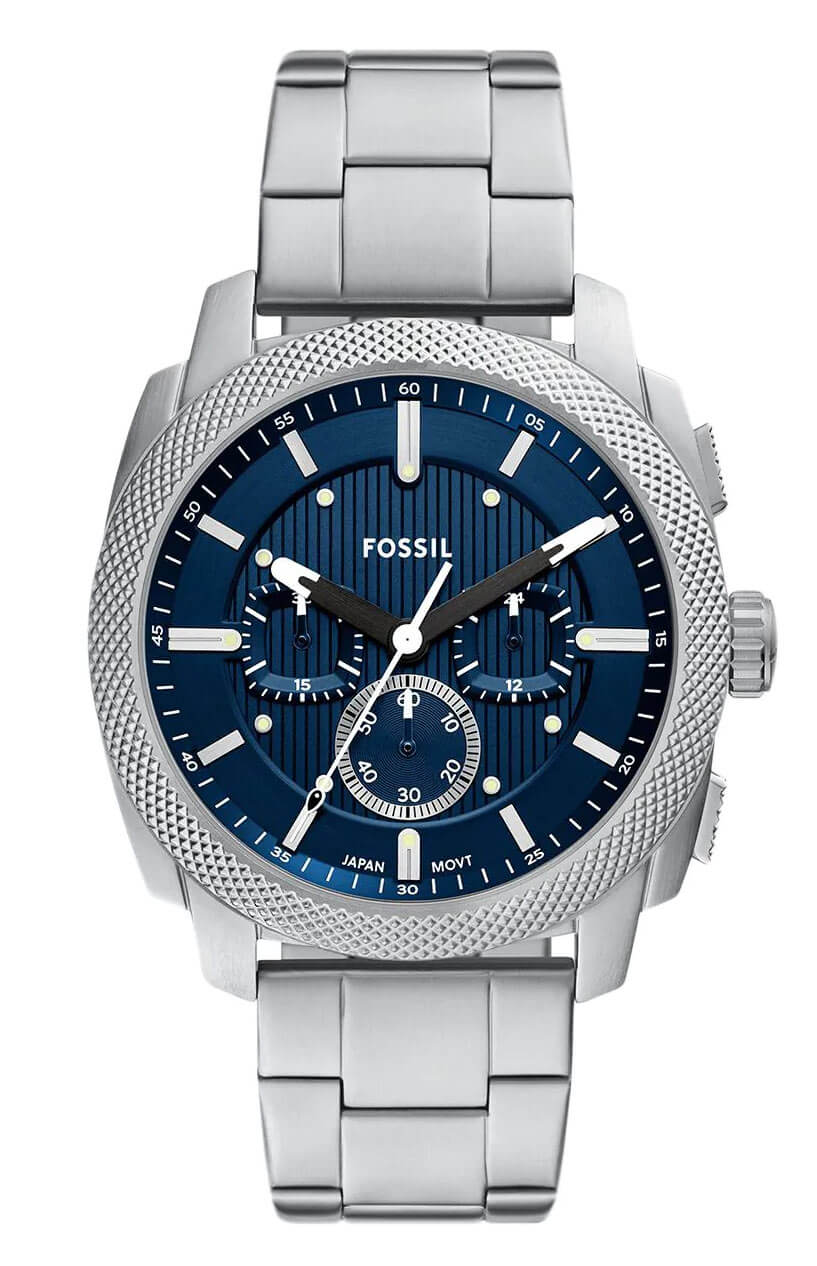 Pánské hodinky Fossil Machine FS6096 jsou modelem, který dokonale kombinuje moderní design s industriálním charakterem. Jeho pevné ocelové pouzdro s výraznou povrchovou úpravou a elegantním stříbrným odstínem okamžitě upoutá pozornost, zatímco hladce osazený náramek zajišťuje pohodlí při nošení po celý den. Skutečnou hvězdou je však hluboce modrý ciferník, který se vyznačuje svislým rýhováním a skvělou čitelností. Subciferníky sportovního chronografu přidávají hodinkám na funkčnosti, zatímco jemné detaily v podobě bílých indexů a ručiček výborně kontrastují s tmavým pozadím a zajišťují harmonický vzhled. Tento model je ideální volbou pro pány, kteří oceňují stylovou jednoduchost bez zbytečných ozdob, ale s nádechem moderní elegance.