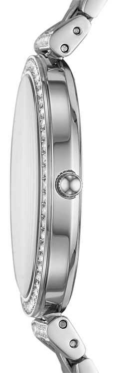 Dámské hodinky Fossil Madeline ES4539 jsou čistou klasikou. Ocelový ciferník s radiálním výbrusem má jednoduché a římské číslice. Kulaté pouzdro poseté krystaly budí na první pohled obdiv. Zapínání ocelového, nerezového náramku je navíc zdobeno efektními krystaly, které jen podtrhují půvab a ženský charakter. Je radost nosit tyto hodinky. Skvělý tip na dárek za světla svíček a sklenky vašeho oblíbeného vína.