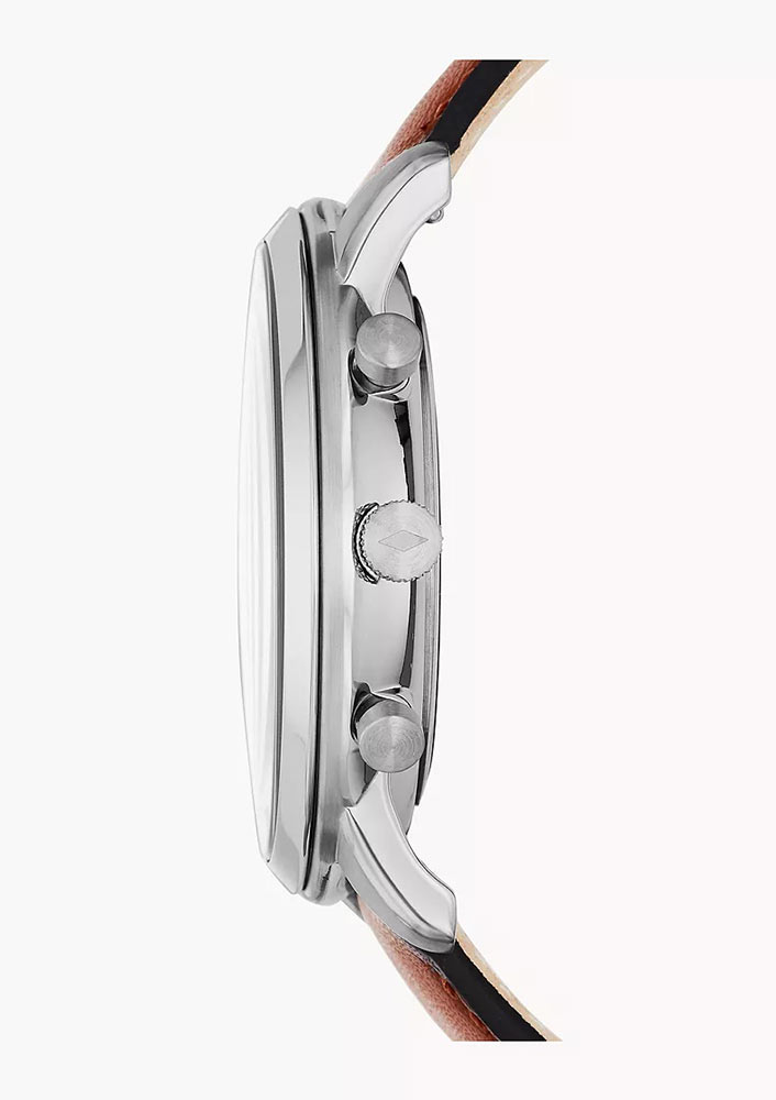 Modrý ciferník je stylový a oživuje duši, zatímco hnědý kožený řemínek se hodí k formálnímu i běžnému nošení a poskytuje meditativní klid. Hodinky jsou návrhem pro muže, kteří jsou neustále v pohybu. Je vybaven sportovním chronografem, kterým lze měřit přesný čas například při fyzické aktivitě. Chronograf je také stylovým vizuálním doplňkem, který oživuje ciferník a dodává tomuto modelu sportovní charakter. Celý design hodinek je uzavřen v ocelovém pouzdře o průměru 44 mm, které nerezaví.
