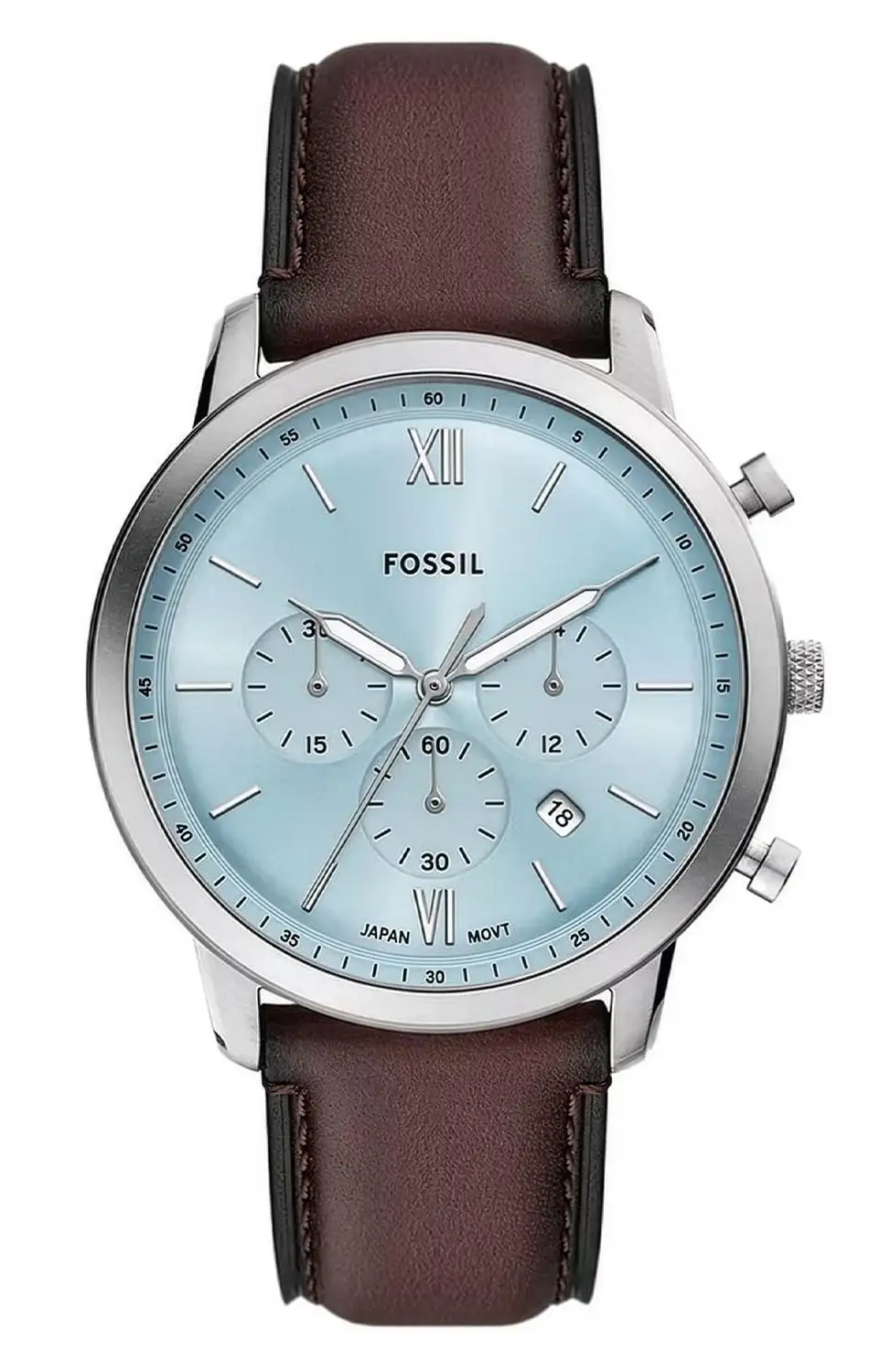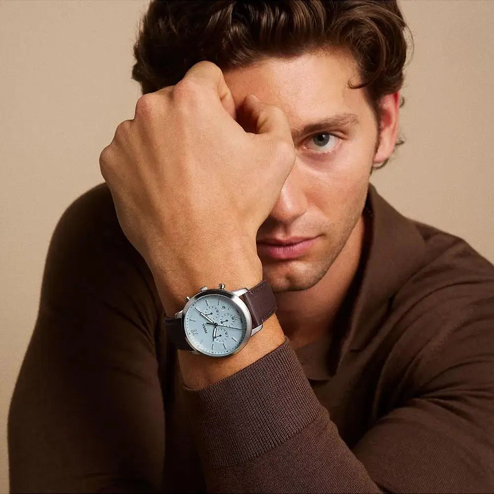 Pánské hodinky Fossil Neutra Chronograph FS6109 jsou propozycí pro milovníky vyváženého stylu, ve kterém se klasická elegance setkává s moderní funkčností. Pouzdro o průměru 44 mm zajišťuje výraznou přítomnost na zápěstí a tlumený, světle modrý ciferník v kombinaci s hnědým koženým řemínkem vytváří nadčasové spojení, které se hodí jak ke každodenním, tak i formálnějším outfitům. Štíhlé indexy a jemné barevné akcenty dodávají celku klidný, uspořádaný charakter.