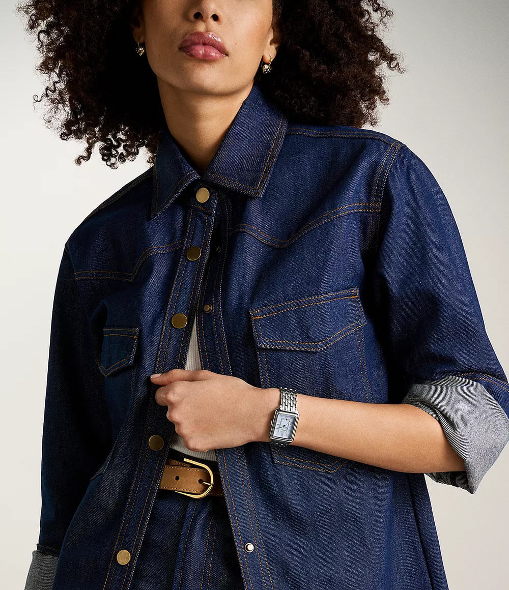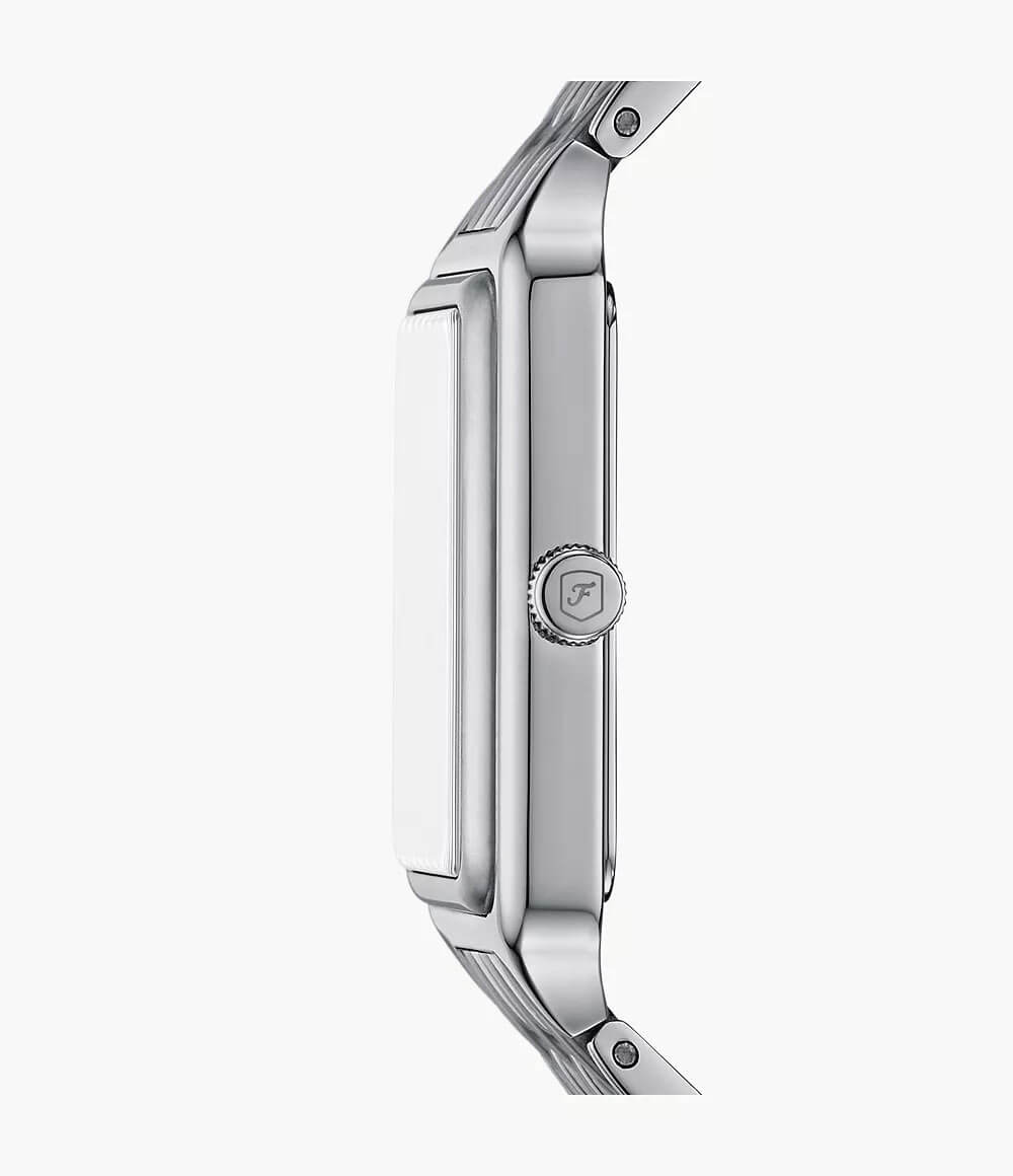 Ciferník tohoto modelu je malým uměleckým dílem. Vyrobený z perleti jemně odráží světlo, čímž vytváří efekt jemné hloubky. Klasické římské číslice a štíhlé ručičky mu dodávají nadčasový charakter, zatímco třpytivé krystaly přidávají nádech luxusu. Právě tyto detaily činí Fossil Raquel tak jedinečnými a okouzlujícími.
