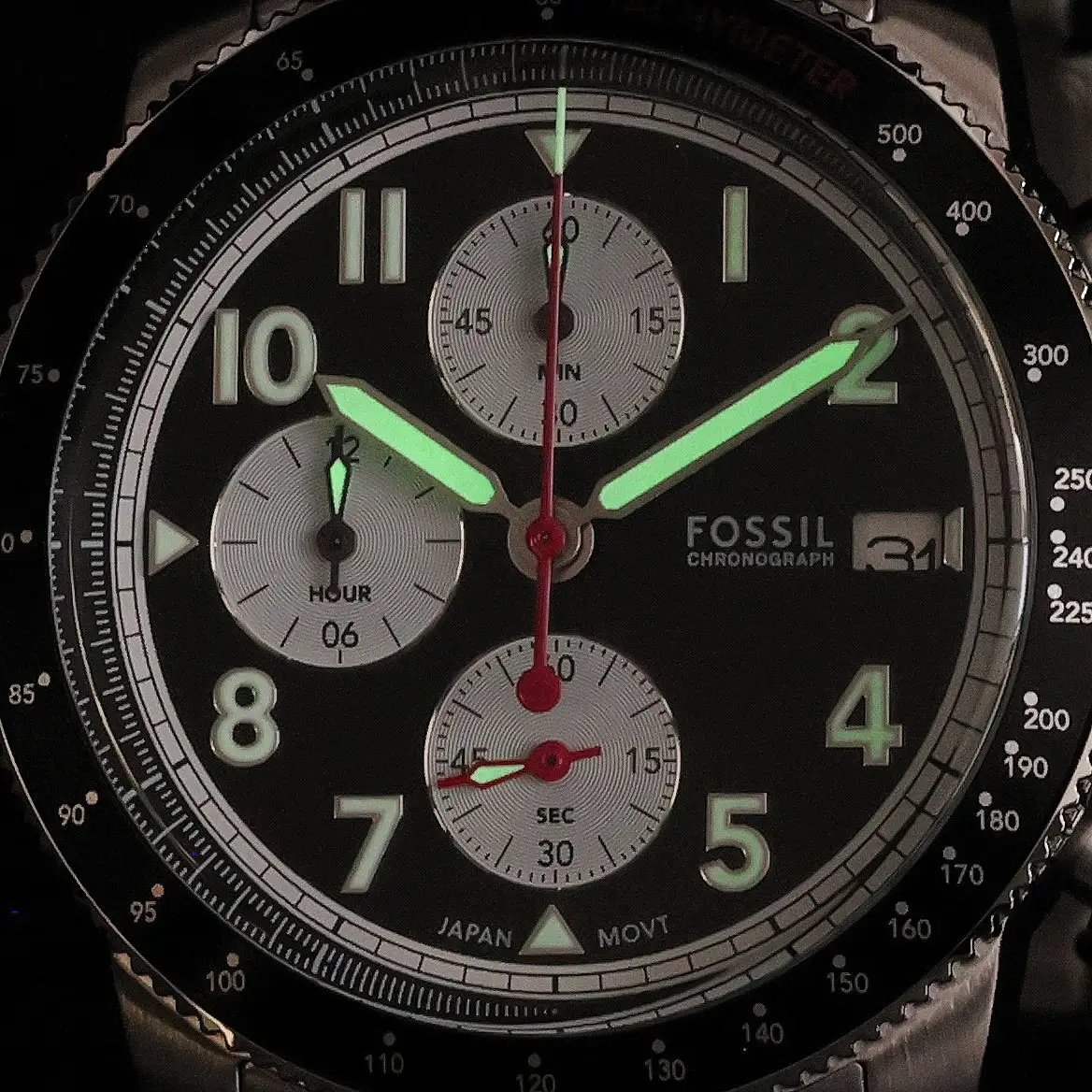 Velitelské centrum tvoří výrazný ciferník s rozšířeným chronografem, který vypadá, jako by byl vyjmut přímo z palubní desky závodního monopostu. Tři přesné subciferníky stopek a tachymetrická stupnice na lunetě ti umožňují mít neustále pod kontrolou čas i rychlost a proměňují každý každodenní úkol v boj o pole position. Kontrastní indexy a ručičky prorážejí temnotu a zaručují čitelnost ve zlomku sekundy – protože ve světě Sport Tourer se počítá každý okamžik.