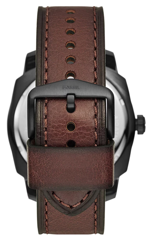 The Machine debutoval v roce 2008. Od začátku to byla Fossilova óda na průmyslové dědictví výroby, řemesla a kutilů. Výše uvedené rozšíření ikony Fossil zahrnuje charakteristické znaky pánských náramkových hodinek Fossil Machine – jejich prominentní pouzdro, spirálovou korunku a ikonickou vroubkovanou texturu – nyní v novém větším pouzdře o průměru 49 mm. Díky černému PVD povlaku, matné povrchové úpravě a hnědému koženkovému pásku byl vintage charakter tohoto modelu ještě více zdůrazněn.