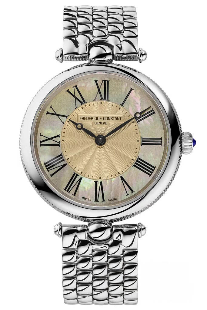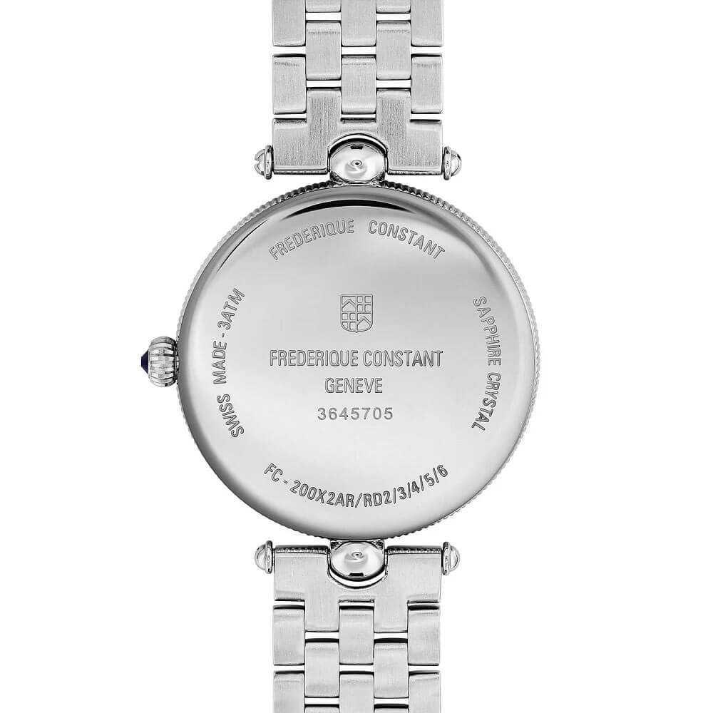 Designéři Frederique Constant se postarali o to, aby materiály použité v tomto modelu nebyly pouze luxusní, ale zároveň odolné a pohodlné při každodenním nošení. Pouzdro o průměru 30 mm je vyrobeno z ušlechtilé oceli, díky čemuž jsou hodinky odolné vůči času a uchovávají si svůj bezchybný vzhled po mnoho let. Výjimečnou lehkost a pohodlí na zápěstí zajišťuje ocelový náramek s články ve tvaru korálků, které činí nošení hodinek podobné elegantnímu šperku. Celkový komfort při používání podtrhuje také safírové sklo, známé svou odolností vůči poškrábání, což znamená, že ciferník hodinek zůstane dokonalý i po mnoha letech nošení.