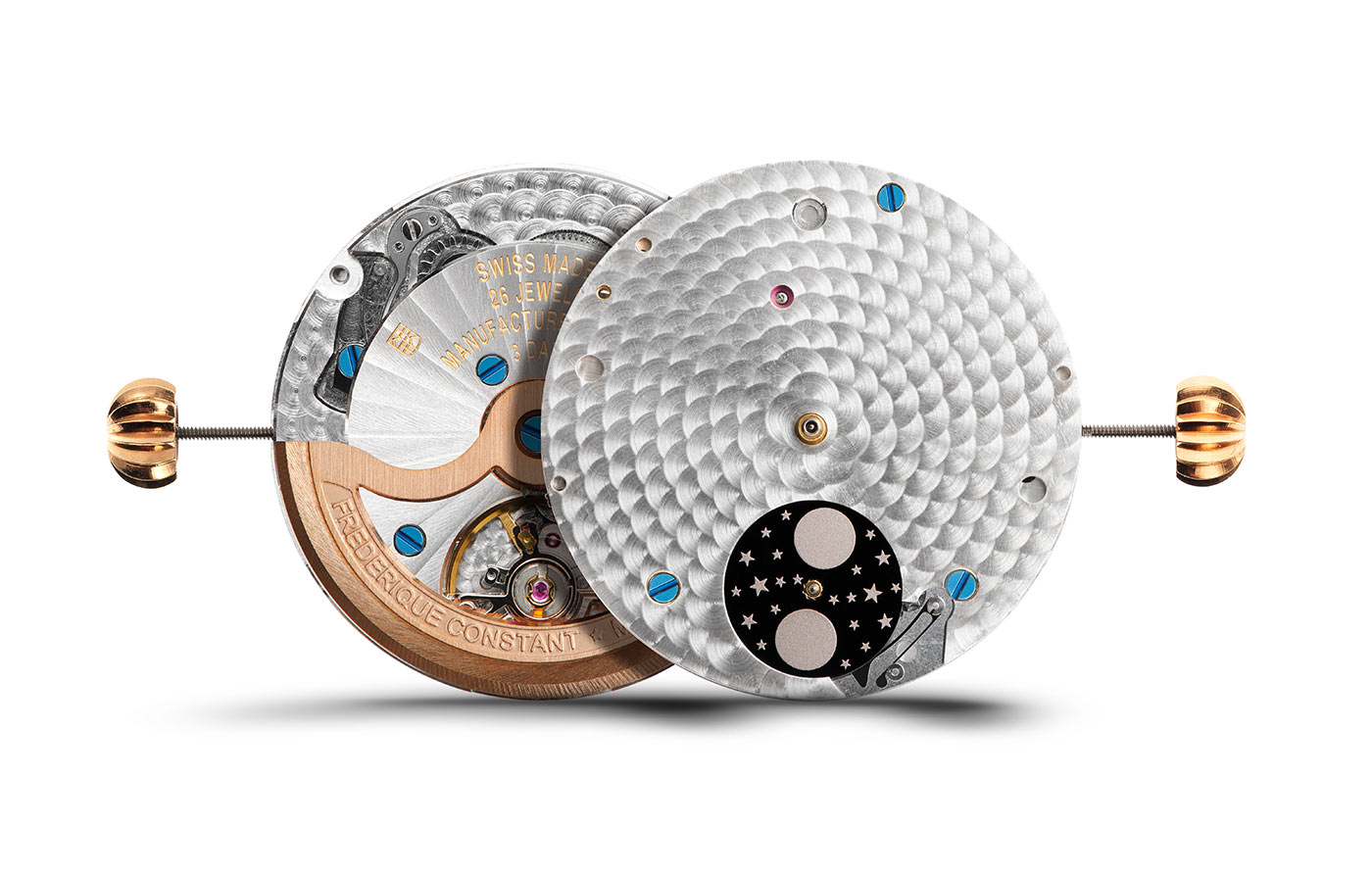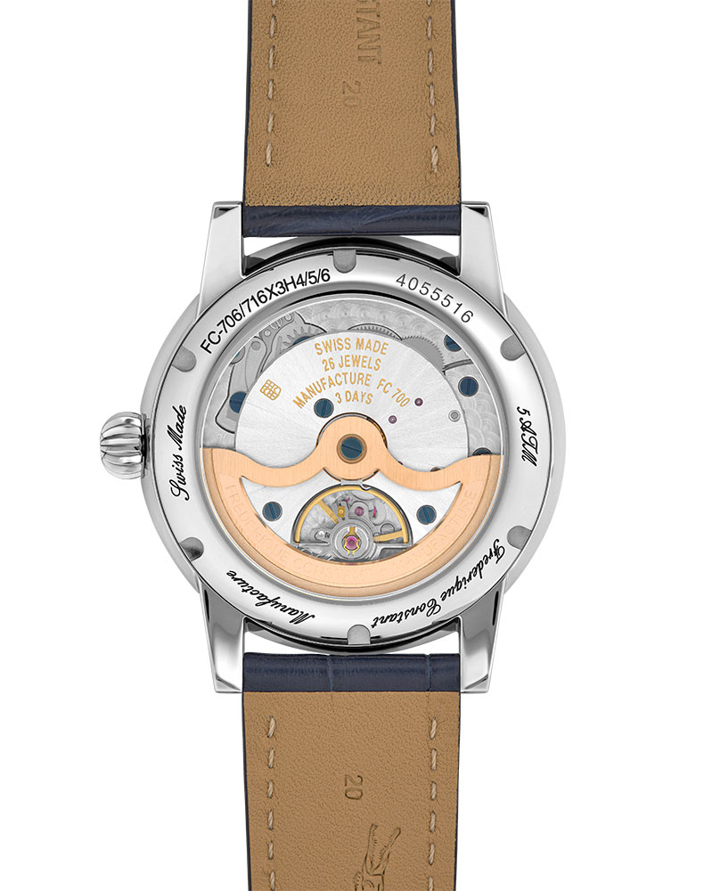 Mechanismus FC-716 Manufacture je nová generace pohybu, poskytující asi 72hodinovou rezervu chodu a tikající frekvencí 4 Hz. Tento pohyb využívá více než 90 % stejných komponent jako předchozí model, což zaručuje jeho spolehlivost. Nové ozdoby, jako je dokončení Cotes de Genève ve tvaru vějíře, nahrazují předchozí kruhový motiv a dodávají hodinkám zvláštní kouzlo. Tyto detaily lze obdivovat skrze průhledný kryt, který je vodotěsný až do 50 metrů. Všechny tři modely jsou pokryty pětiletou zárukou. Frederique Constant Classic Moonphase Date Manufacture není jenom hodinkami pro znalce, ale také pro ty, kteří oceňují jak estetiku, tak dokonalé provedení.