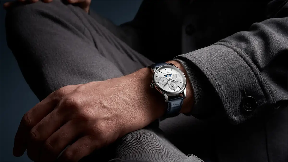 Největší hodnotou tohoto modelu je manufakturní strojek FC-776, kompletně navržený a sestavený v ženevské manufaktuře značky. Kalibr nabízí 72 hodin rezervy chodu, tedy celé tři dny bez natahování, a pracuje s frekvencí 28 800 kyvů za hodinu. To je zárukou nejen přesnosti, ale i vysoké spolehlivosti. Tento mechanismus obsluhuje jednu z nejvíce ceněných komplikací v hodinářství – věčný kalendář, který automaticky rozpoznává délku měsíců a přestupné roky, vyžadující korekci až v roce 2100. Indikace zahrnují den v týdnu, datum, měsíc, přestupný rok a fáze měsíce. Všechny funkce lze pohodlně nastavovat díky diskrétním tlačítkům rozmístěným na bocích pouzdra.