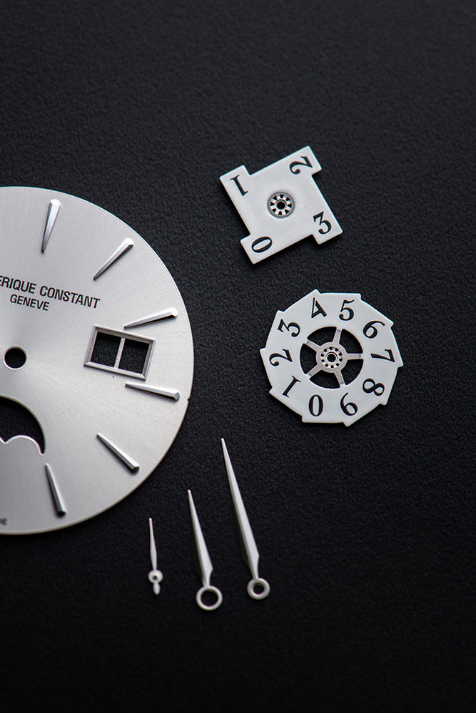 Na druhé straně mezi 2. a 3. hodinou je funkce Frederique Constant Big Date obklopená dvojitým oknem s oddělenou přihrádkou pro desítky a jednotky. Tuto dokonalou rovnováhu ještě zdůrazňuje měsíční fáze v 6 hodin na hvězdně modrém pozadí. Stejně jako všechny předchozí mechanismy se Frederique Constant ujistil, že i tento poskytuje intuitivní ovládání. Tři komplikace, funkce nastavení času a natahovací mechanismus se nastavují pomocí šikovné velké korunky na 3 hod. Bez tlačítek, korektorů a jehel je kalibr FC-735 vysloveně moderní. Promyšlené a navržené pro každodenní použití, pokračují v nadčasovém étosu: cenově dostupné hodinky, které nevyžadují žádné speciální hodinářské dovednosti ze strany nositele.