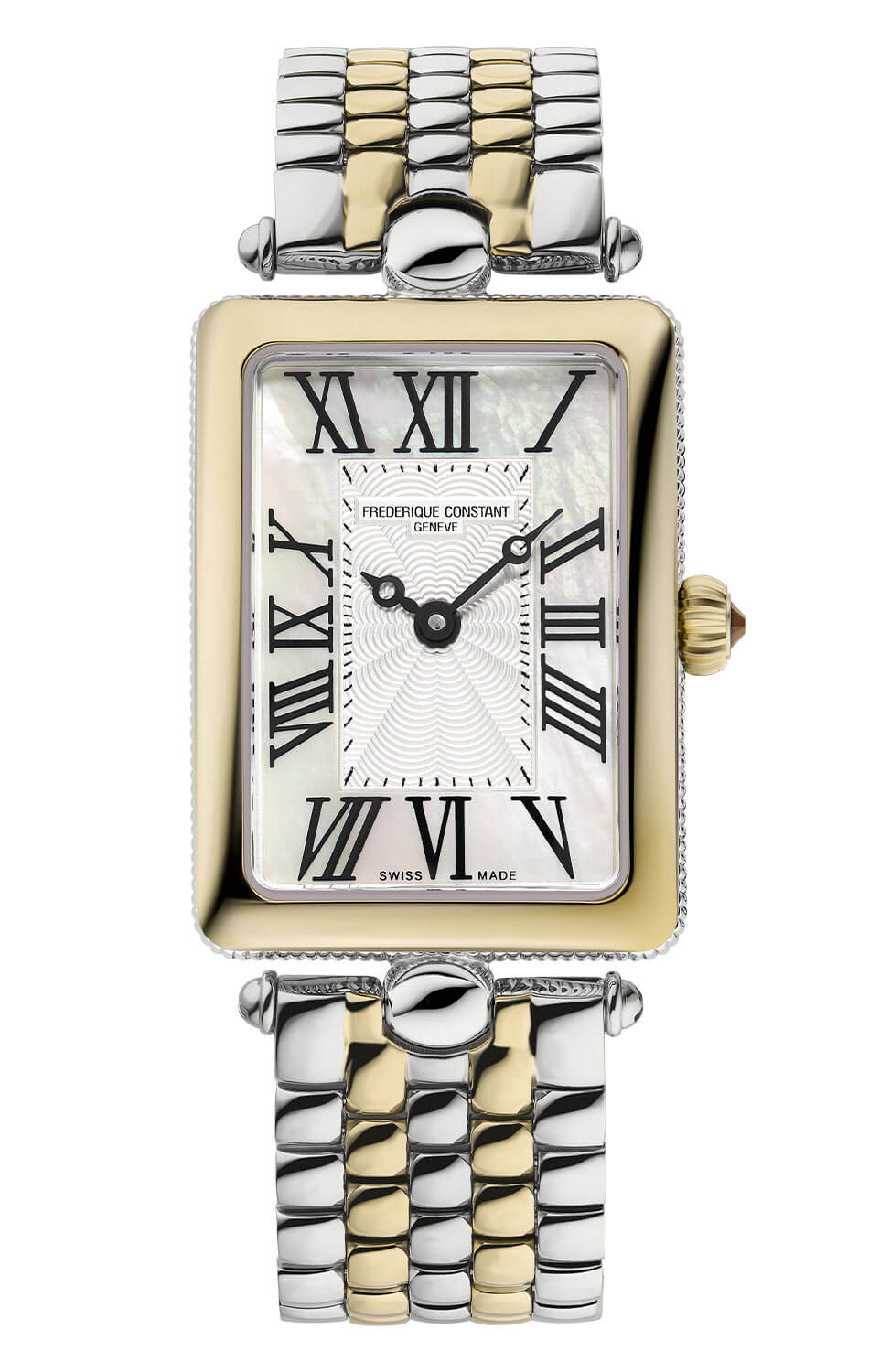 Obdélníkové dámské hodinky Frederique Constant Classics Art Deco Carree FC-200MPW2AC3B jsou ztělesněním ženského stylu, v němž se klasická forma setkává s klenotnickou vytříbeností. Tento model, inspirovaný estetikou 30. let, byl navržen pro ženy, které si cení elegance v její nejnadčasovější podobě. Jemný, obdélníkový tvar pouzdra a decentní hra barev oceli a zlata dodávají hodinkám šarm a harmonii, připomínající styl dávných ikon elegance. Jsou to hodinky pro ženy, které mají rády, když každý detail jejich outfitu vypráví příběh – o třídě, tradici a vědomé volbě.