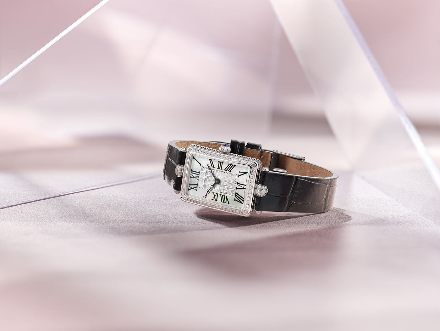 Řada Frederique Constant Classics Art Déco, která byla poprvé uvedena na trh v roce 2007, se dodnes těší velkému a neustálému zájmu. V roce 2022 se pouzdra klasických hodinek ve stylu 20. let Frederique Constant Classics Art Deco Carree zdají štíhlejší, získávají nové, vznešenější a efektivnější proporce. Dámský retro model Frederique Constant FC-200MPW2ACD6 výše je jednou ze tří nových verzí, které různými způsoby kombinují pravou perleť s diamanty. Stále si zachovává výrazný klasický styl s gilošovaným číselníkem a kabošonovým ornamentem korunujícím korunu.