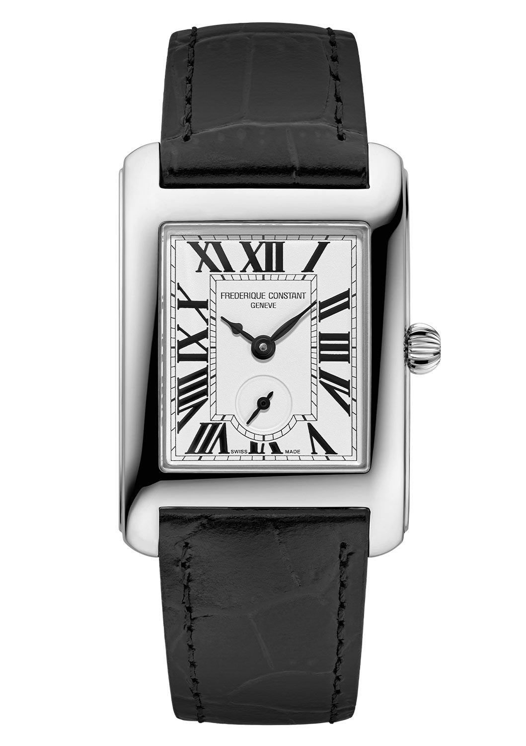 Před více než sto lety, ve 20. a 30. letech 20. století, vyrazili hodináři novou cestu, odklonili se od tradičních kulatých pouzder a uvedli na trh elegantní čtvercové a obdélníkové modely. Tyto inovativní designy, které vždy fascinují milovníky klasiky, jsou nyní oživeny v podobě hodinek Frederique Constant Classics Carree FC-235S2C6. Tyto hodinky jsou vyrobeny z oceli a jsou vybaveny přesným švýcarským strojkem s malou sekundovou komplikací. Stříbrný ciferník pokrytý tvrdým safírovým sklem, zdobený velkými římskými číslicemi, nabízí harmonické uspořádání: dvě centrální ručky a malá vteřinová ručka umístěná mimo střed, nad minutovým „sektorovým číselníkem“.