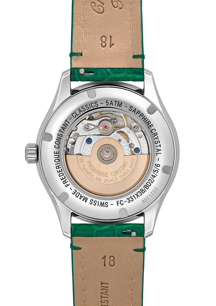 Fascinující příběh spojený s vznikem tohoto modelu sahá po inspiraci dcerou ředitele výzkumu a vývoje. Její vize romantického a poetického pojetí měsíční fáze vedla k vytvoření dvou poloměsíců, které se v harmonickém tanci objetím spojují na pozadí hvězdného nebe. Tyto jedinečné hodinky spojují modernost s klasickým stylem a reprezentují unikátní přístup k hodinářství. Moderní římské číslice na ciferníku, poprvé v kolekci provedené ve stejném odstínu jako kožený řemínek s přezkou, vytvářejí charakteristický styl, který je v hodinářství vzácností. Jemné odstíny perlové hmoty přidávají eleganci celé kompozici. Automatický mechanismus kal. FC-331 zajišťuje přesný chod po dobu přibližně 38 hodin, a průhledný zadní kryt ukazuje jeho rafinovanou konstrukci, poskytující exkluzivní estetické zážitky. Tato varianta modelu Classics Elegance Luna je zvláště okouzlující, protože má skutečné diamanty nejen na ciferníku, ale také na rámu, celkem 96, což mu přidává ještě větší prestiž.