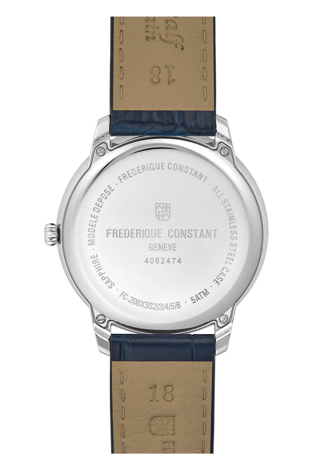Hodinky jsou uloženy v ocelovém pouzdře o průměru 37 mm odkazujícím na tradiční vroubkované lunety v charakteristickém ženevském stylu, avšak s moderním neobvyklým akcentem. Název „Coin“ odkazuje na elegantní vroubkovanou lunetu zasazenou pod safírovým sklíčkem, které obklopuje celý číselník. Prezentované hodinky Frederique Constant jsou spárovány s elegantním modrým koženým řemínkem. Dokonale ladí s barvou ciferníku. Jeho exotický vzor dodává charakter. Tento kožený opasek je vybaven klasickým zapínáním na přezku.