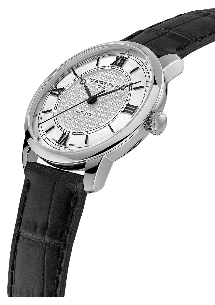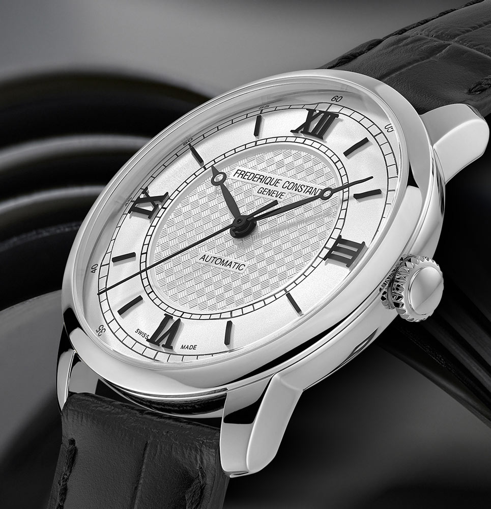 Tento model je spojením dědictví švýcarského hodinářství. Pod vysoce odolným safírovým sklem se nachází estetický ciferník. Střední část ciferníku je zdobena gilošováním a pyšným logem značky Frederique Constant, zatímco vnější část je opatřena římskými číslicemi a minutovým kroužkem, který připomíná železniční tratě. Hodinu lze přečíst díky charakteristickým, elegantním ručičkám typu Breguet s kroužkem a špičkou na vrcholu. Pod ciferníkem se nachází manufakturní automatické srdce časoměru Manufacture La Joux Perret G100 – mechanismus poháněný pohybem zápěstí s rezervou chodu až 68 hodin. Automatické mistrovské dílo hodinářství je přesné a zajistí dokonalou práci měření času. Průhledné dýnko na zadní straně pouzdra tohoto časoměru umožňuje obdivovat tlukot srdce a dekorace Côtes de Genève.