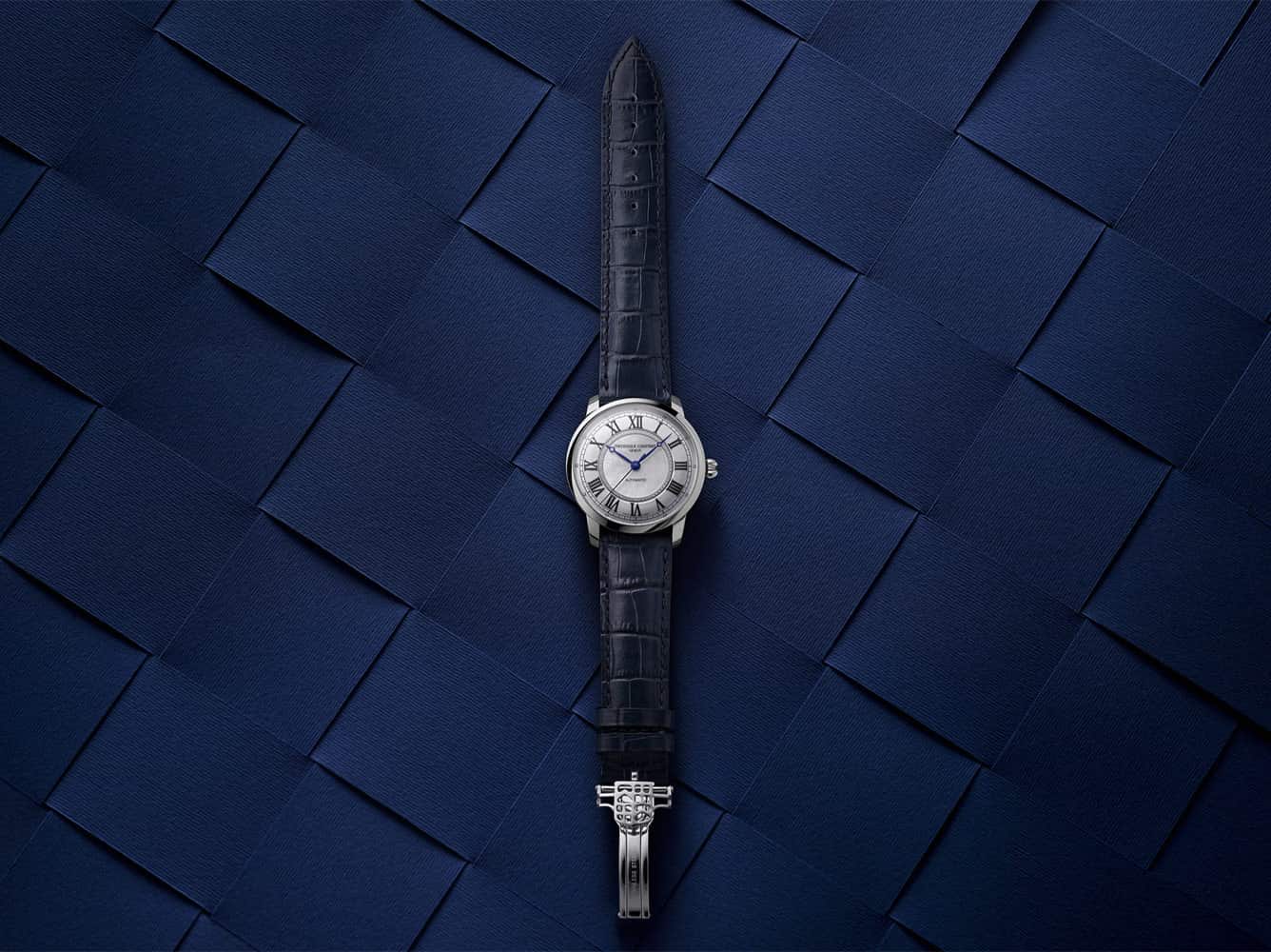 Limited Edition hodinek Frederique Constant Classics Premiere je umístěna v kulatém pouzdře z nerezové oceli 316L ve stříbrné barvě o velikosti 38,50 mm . Díky malé tloušťce pouzdra se hodinky snadno vejdou pod manžetu košile. Na pravé straně pouzdra je díky rýhování elegantní a snadno ovladatelná korunka. Výrobce zkombinoval časomíru s modrým koženým páskem s exotickým vzorem a bezpečnou motýlkovou sponou. Popruh je měkký a lehký, což zajistí pohodlí při jeho používání.