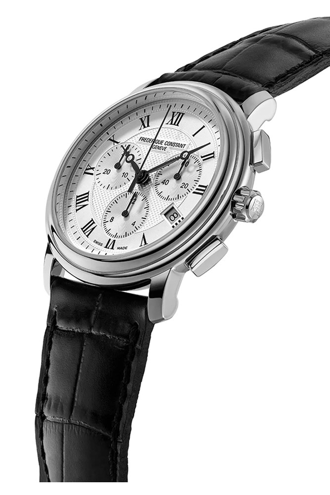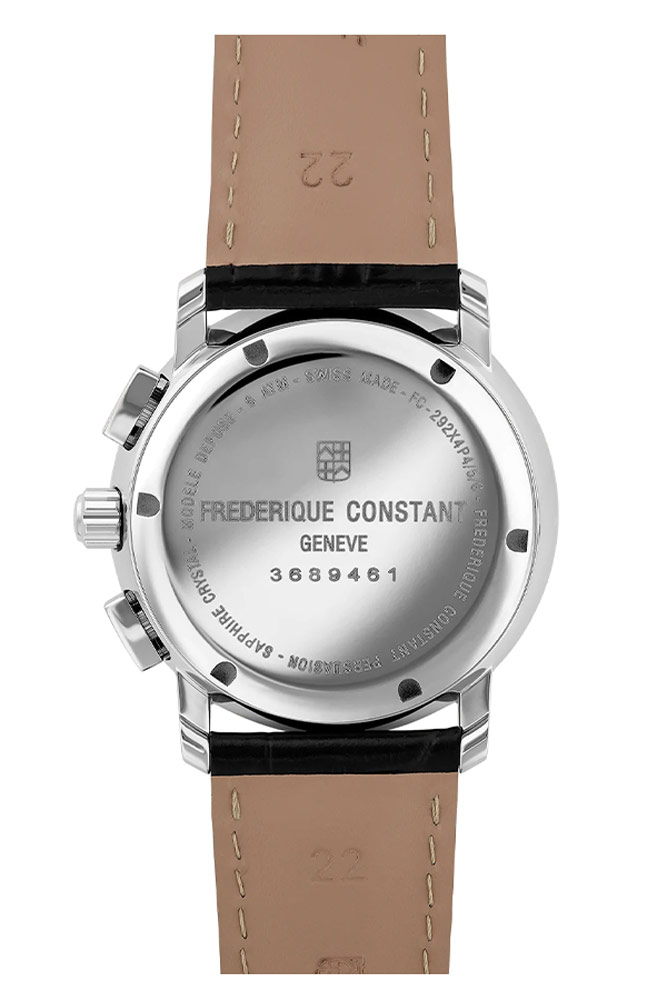 Ocelové pouzdro o průměru 40 mm a tloušťce 10,19 mm nabízí ideální proporce pro každodenní nošení. Uvnitř pracuje quartzový strojek FC-292 (založený na Ronda 5030D), který poskytuje indikaci hodin, minut a sekund a také funkce stopek a datumovky. Praktická vodotěsnost do 6 ATM činí hodinky odolnými vůči každodenním podmínkám, aniž by slevily z elegance.