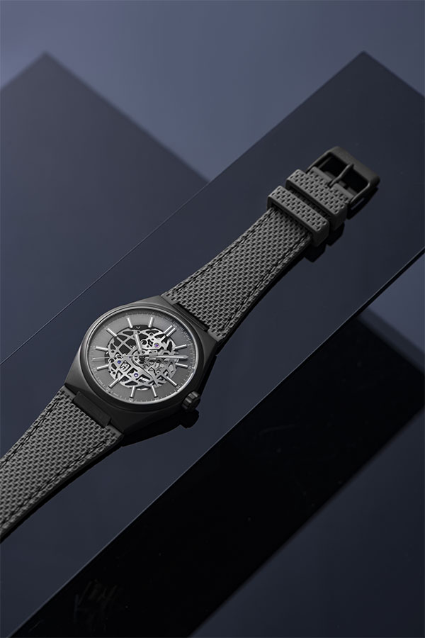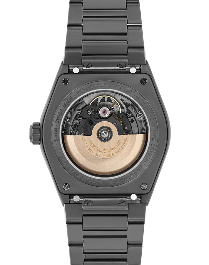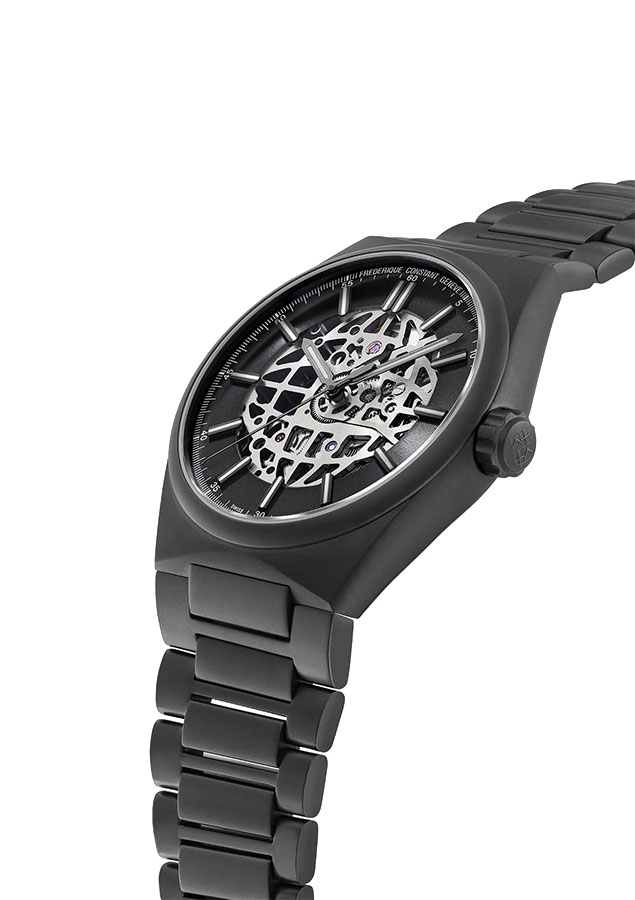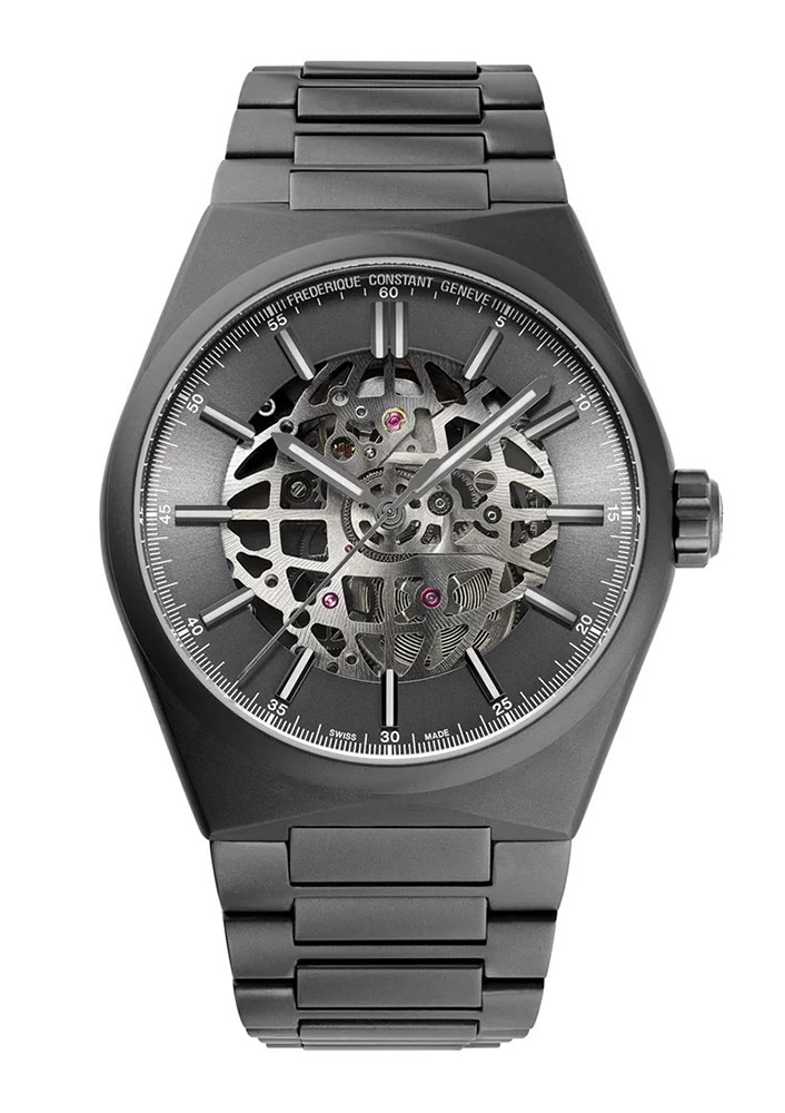 Frederique Constant Highlife Automatic Skeleton je limitovaná produkční série omezená na 888 unikátních kusů. Nabízí tajemný a moderní vzhled, skládající se z černého ciferníku s natištěnou bílou sekundovou stupnicí, ocelového pouzdra o průměru 41 mm a tloušťce 10,84 mm a třířadého náramku s titanovým PVD povlakem. Součástí sady je i druhý vyměnitelný gumový řemínek v antracitově šedé barvě. Ciferník je chráněn nejkvalitnějším, předním vypouklým safírovým sklem, které nepoškrábe. Stříbrné indexy jsou naneseny a vyplněny bílou luminiscenční hmotou, stejně jako ručně leštěné hodinové a minutové ručky. Ve 41mm pouzdře s automatickým Machinekem s rezervou chodu přibližně 38 hodin vykazuje Highlife Automatic Skeleton pečlivě zpracovaný, záhadný a moderní vzhled zaměřený na budoucnost.