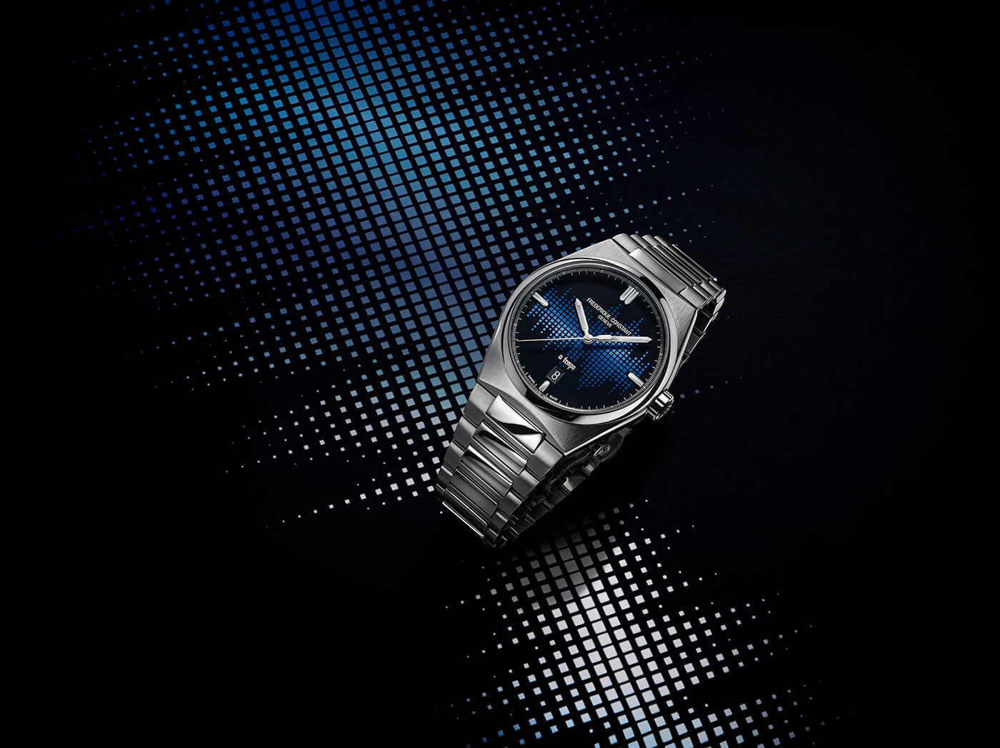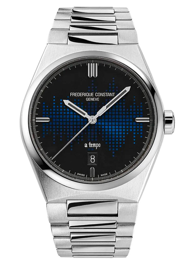 Přední stranu hodinek kryje safírové sklíčko vysoce odolné proti poškrábání. Kryje unikátní číselník navržený samotným The Avenerem. Na černém disku byl aplikován tmavě modrý vzor, který připomíná frekvence zvukových vln ze studiové konzole. Konzole je důležitým prvkem v práci všech hudebních tvůrců na světě. Na ciferníku je nápis „a tempo“, což znamená „návrat k původní rychlosti“. Aktuální čas ukazují jasné, ručně leštěné ručičky a indexy. Jsou vyplněny černou luminiscencí, která vám pomůže odečítat čas za zhoršených světelných podmínek. Tento model má také prostor pro zobrazení data. V šest hodin se v okně s tmavým pozadím zobrazí aktuální den v měsíci. Pod číselníkem je instalován vysoce přesný automatický strojek FC-303 s certifikátem chronometru COSC pro přesný chod. Controle Officiel Suisse des Chronometres je instituce, která pečlivě zkoumá fungování mechanismu. Když projde všemi náročnými testy, získá COSC certifikát přesné chůze. Automatický mechanismus FC-303 zaručuje dokonalé měření času a rezervu chodu až 38 hodin.