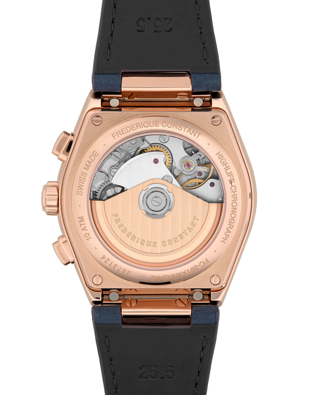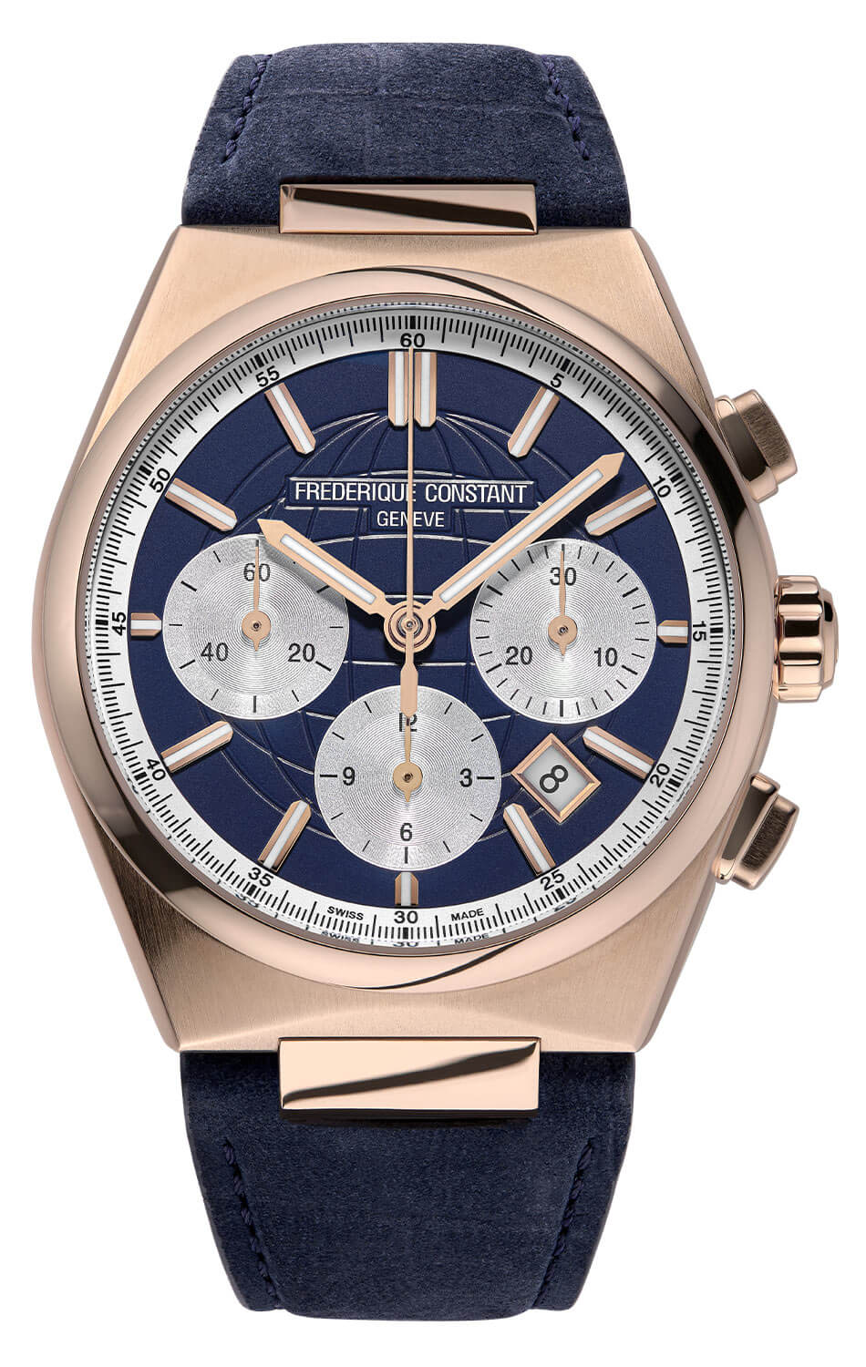 Modrý ciferník hodinek je chráněn safírovým sklem, které poskytuje maximální odolnost proti poškrábání. Klasické ručky, liniové indexy, čitelné čítače chronografu a datumovka zajišťují skvělou funkčnost a estetiku na nejvyšší úrovni. Luminiscenční vrstva na ručkách a indexech umožňuje pohodlné používání i za snížených světelných podmínek. Uvnitř hodinek se nachází manufakturní automatický strojek FC-391 s rezervou chodu až 60 hodin, což zajišťuje spolehlivost a plynulý chod. Práci mechanismu lze sledovat skrze prosklené dýnko, což dále podtrhuje hodinářské mistrovství této edice.