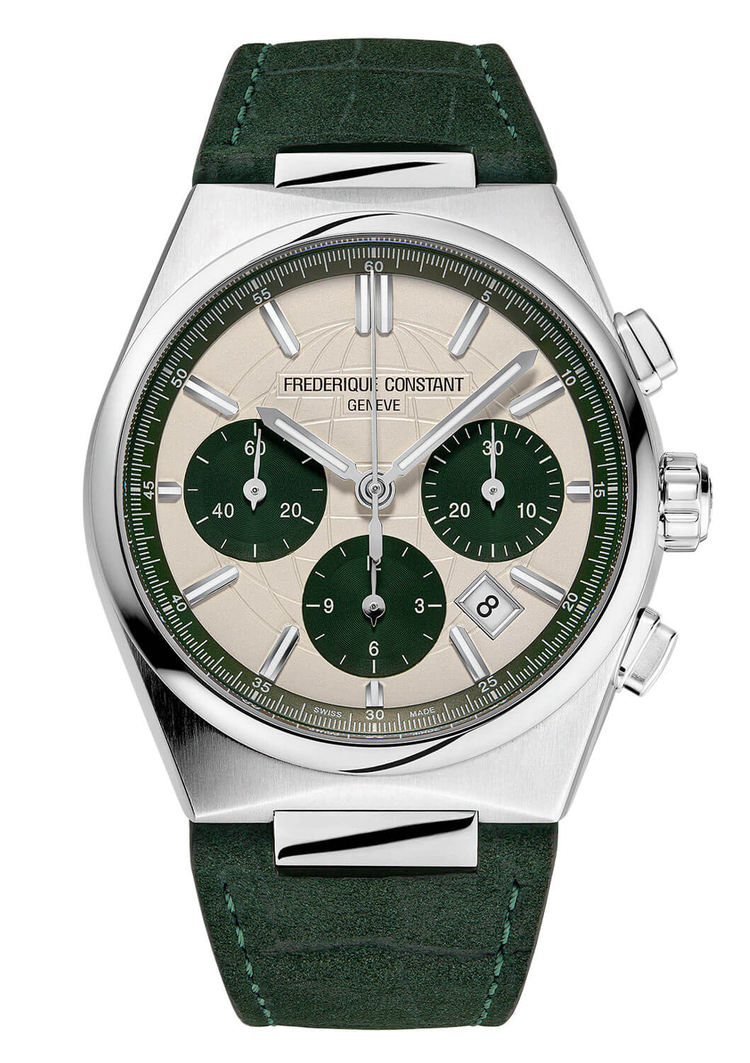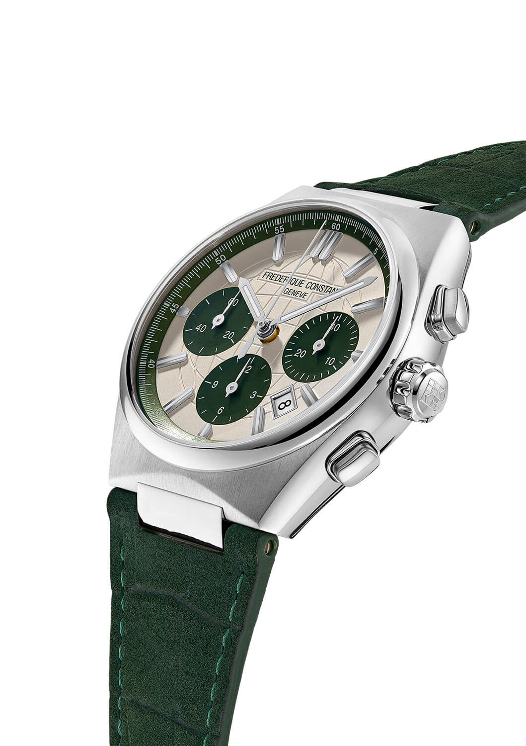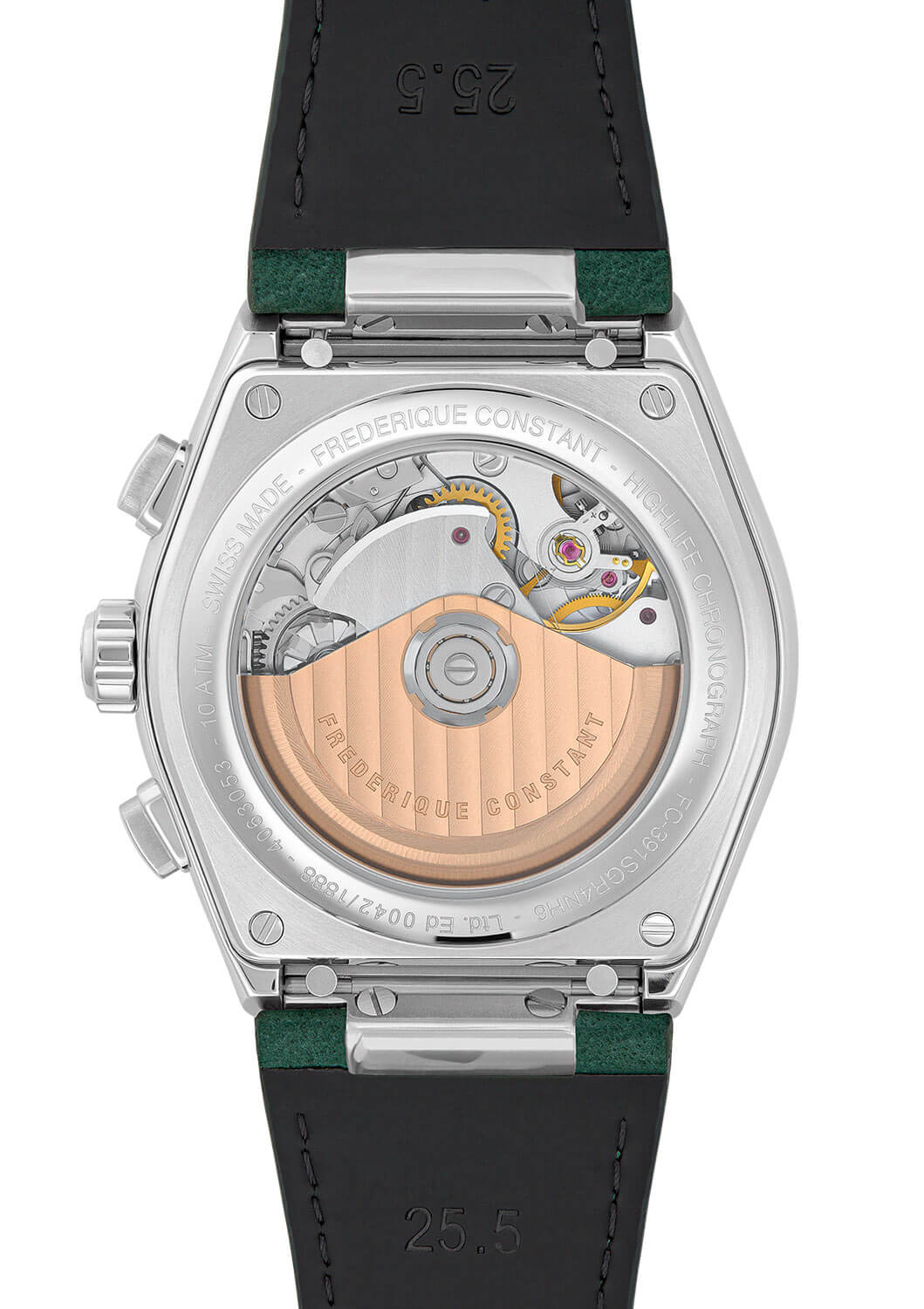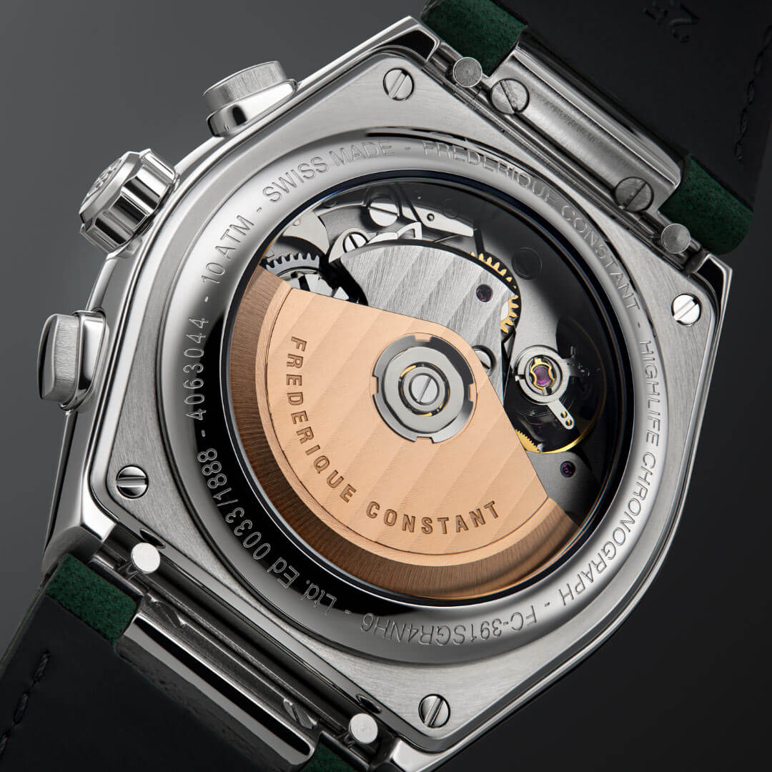 Číselník hodinek je chráněn safírovým sklíčkem, které poskytuje maximální odolnost proti poškrábání. Klasické ručky, liniové indexy, dobře čitelné subciferníky chronografu a datumovka zaručují funkčnost i estetiku na nejvyšší úrovni. Luminescenční vrstva na ručkách a indexech umožňuje pohodlné používání hodinek i ve slabém osvětlení. V jejich srdci se skrývá manufakturní automatický kalibr FC-391, který nabízí 60hodinovou rezervu chodu, což zajišťuje spolehlivost a plynulost chodu. Práci mechanismu lze sledovat skrze průhledné zadní víko, což ještě více zdůrazňuje hodinářské mistrovství této edice.